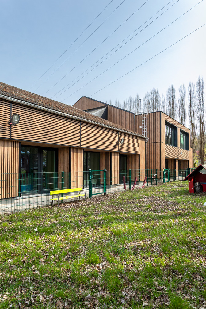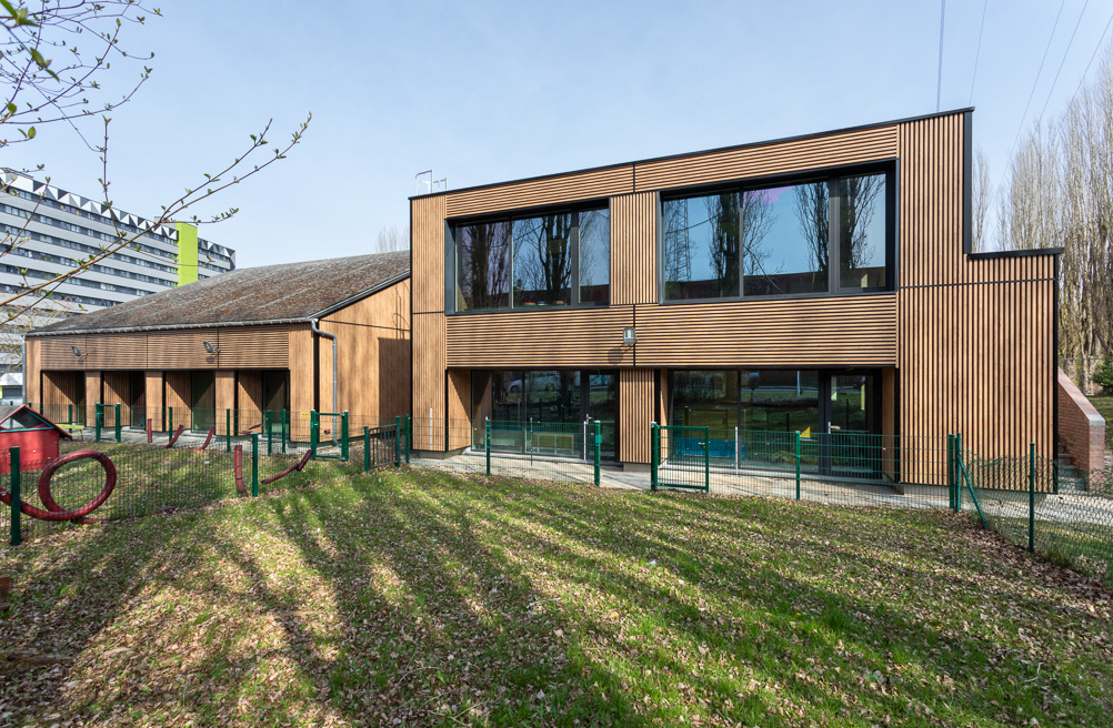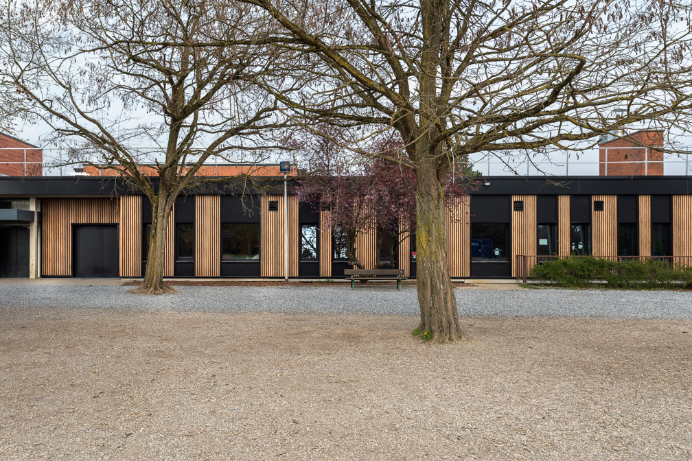 Dit renovatieproject in Charleroi is een model voor klimaatadaptatie door de combinatie van energie-efficiëntie en respect voor het bestaande. De kracht ligt in een gedifferentieerde strategie die een vermindering van 45% van het energieverbruik toestaat op zestien uiteenlopende gebouwen. Door systematisch de daken te isoleren en de kozijnen te vervangen door hoogrendement dubbel glas, beperken de architecten de thermische verliezen. De aanpak is duurzaam: ze geeft de voorkeur aan biogebaseerde isolatiematerialen zoals wol of houtvezel en past de schil aan op basis van erfgoedwaarde. Van het thermisch behoud van beton tot isolatie aan de buitenkant met houten bekleding, het project bewijst dat energiezuinigheid naadloos kan worden geïntegreerd in de stedelijke identiteit.