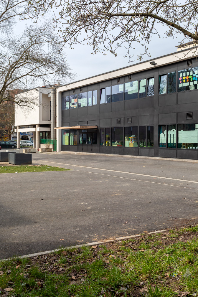 De grootste uitdaging lag in het evenwicht tussen een vermindering van 45% van het energieverbruik en het behoud van de erfgoedwaarde van zestien uiteenlopende gebouwen. De architecten beantwoordden dit met een classificatiestrategie in drie categorieën. Voor het opmerkelijke erfgoed (Bosquetville, Depelsenaire) bleef de ingreep onzichtbaar, gericht op de daken en kozijnen. Voor de sportcomplexen werd een hybride benadering toegepast: isolatie aan de buitenzijde met duurzame materialen (hout, plaatstaal) terwijl iconische elementen werden gerestaureerd, zoals het Ubac-fresco dat identiek werd gereconstrueerd. Ten slotte, voor de gebouwen zonder architecturaal belang, werd een grondige renovatie uitgevoerd die de gevels opnieuw ontwierp, waarbij thermische prestaties en nieuwe stedelijke interactie werden verenigd.