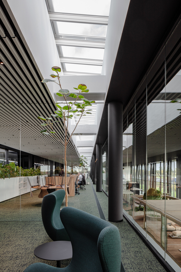Het project bevordert het welbevinden door een interieur te creëren dat licht, open en verbonden met buitenruimtes is. Ruimtelijke samenhang, heldere circulatie en zichtlijnen zorgen voor een intuïtieve en comfortabele beleving, terwijl groen en landschappelijke elementen rust en inspiratie bieden. Flexibele indelingen en hoogwaardige afwerking ondersteunen zowel werk als ontspanning, en de scenografie versterkt de beleving van het merk en de omgeving. Zo ervaren bezoekers, medewerkers en klanten een stimulerende, uitnodigende en inspirerende omgeving die comfort, betrokkenheid en productiviteit bevordert.