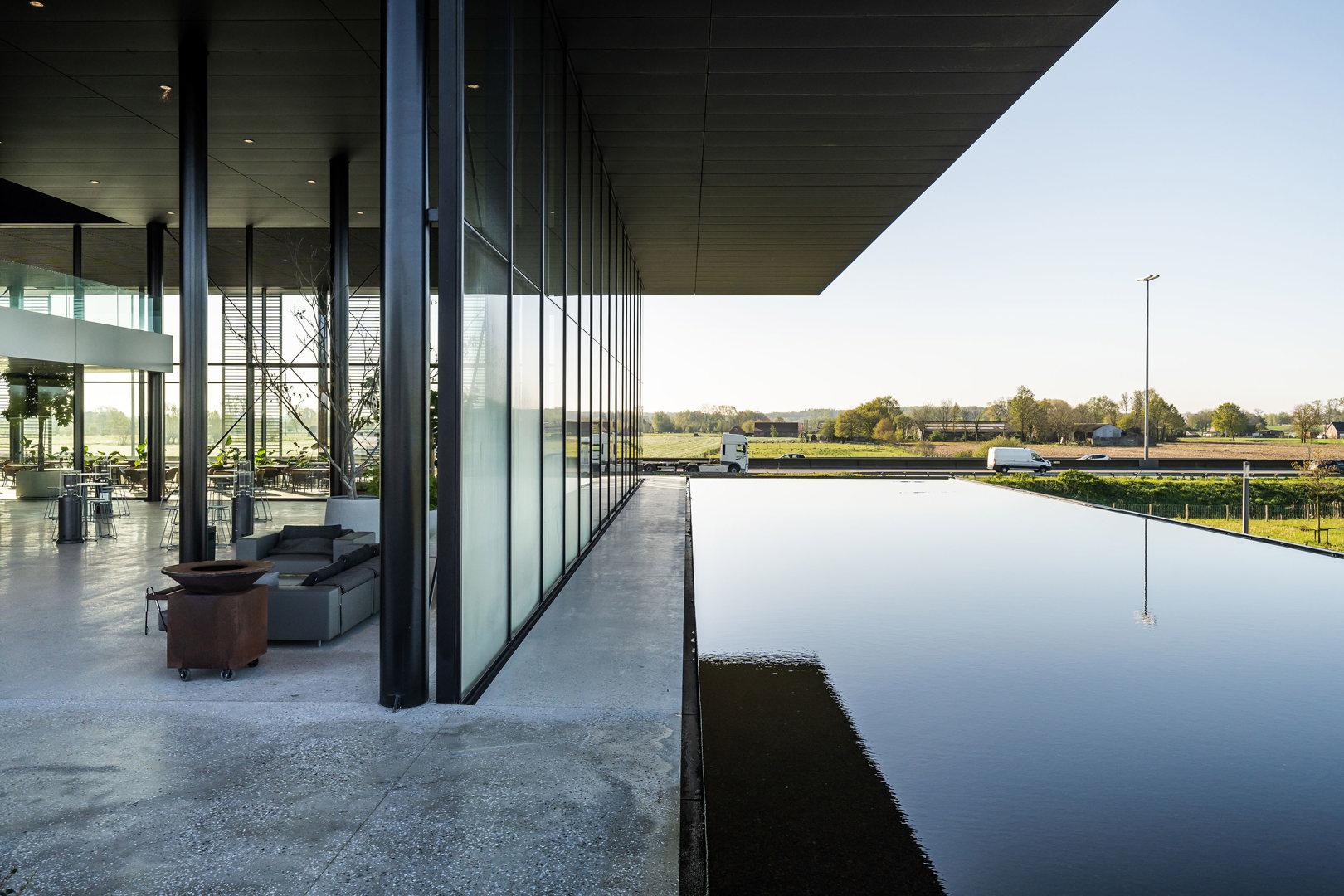 De ontwerpopdracht van de NOA-site was om een 380 m lange industriële site langs de E17 te transformeren tot een landmark dat Rensons internationale outdoor-ambities vertaalt in architectuur en beleving. Het project moest functioneren als een zwevend XXL-tuinpaviljoen waarin showroom, kantoren, conferentiefaciliteiten en productieruimte geïntegreerd zijn, en binnen- en buitenruimtes vloeiend samenkomen. Belangrijk was dat het ontwerp zichtbaar, herkenbaar en inspirerend is voor voorbijrijdende automobilisten, en dat architectuur, landschap en scenografie samen één coherente totaalbeleving vormen.