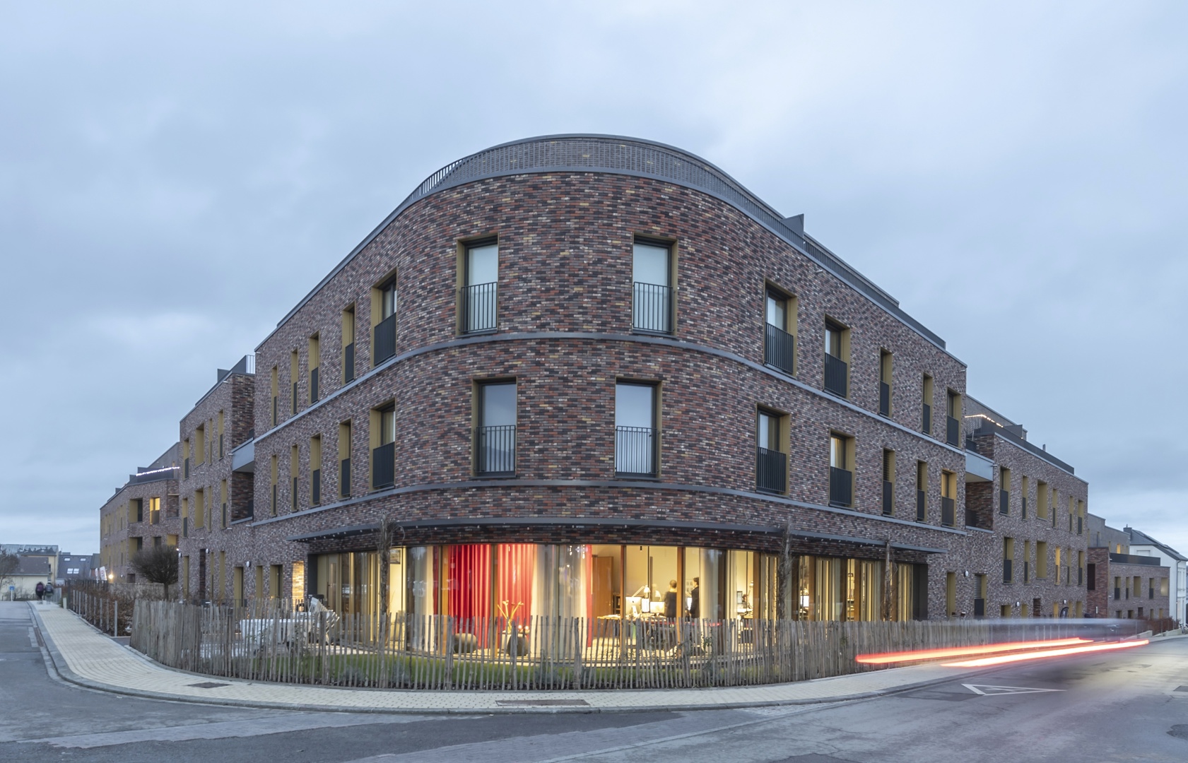De uitdaging was om een juiste dichtheid aan te bieden, die in staat is om een goede aansluiting te vinden met een bestaande dorpsstructuur, terwijl een bredere stedelijke ontwikkeling wordt begeleid. Het was niet de bedoeling een geïsoleerd object te produceren, maar een fragment van het dorp te bouwen op het zenuwcentrum van het station, op 8 minuten van Luxemburg-stad. De belangrijkste uitdaging lag in de capaciteit om te verdichten zonder de schaal en identiteit van de plaats te breken. Het project beantwoordt hieraan met een gefragmenteerde compositie, waarbij volumes, doorbraken en terugtrekkingen worden gewerkt om elke massiviteit te vermijden. De bakstenen gevels, de loggia's en de variaties in openingen dragen bij aan deze uitstraling, waardoor een fijne relatie tussen binnen en buiten ontstaat. De tussenruimten worden overgangsgebieden, die de uitzichten en het gebruik filteren.