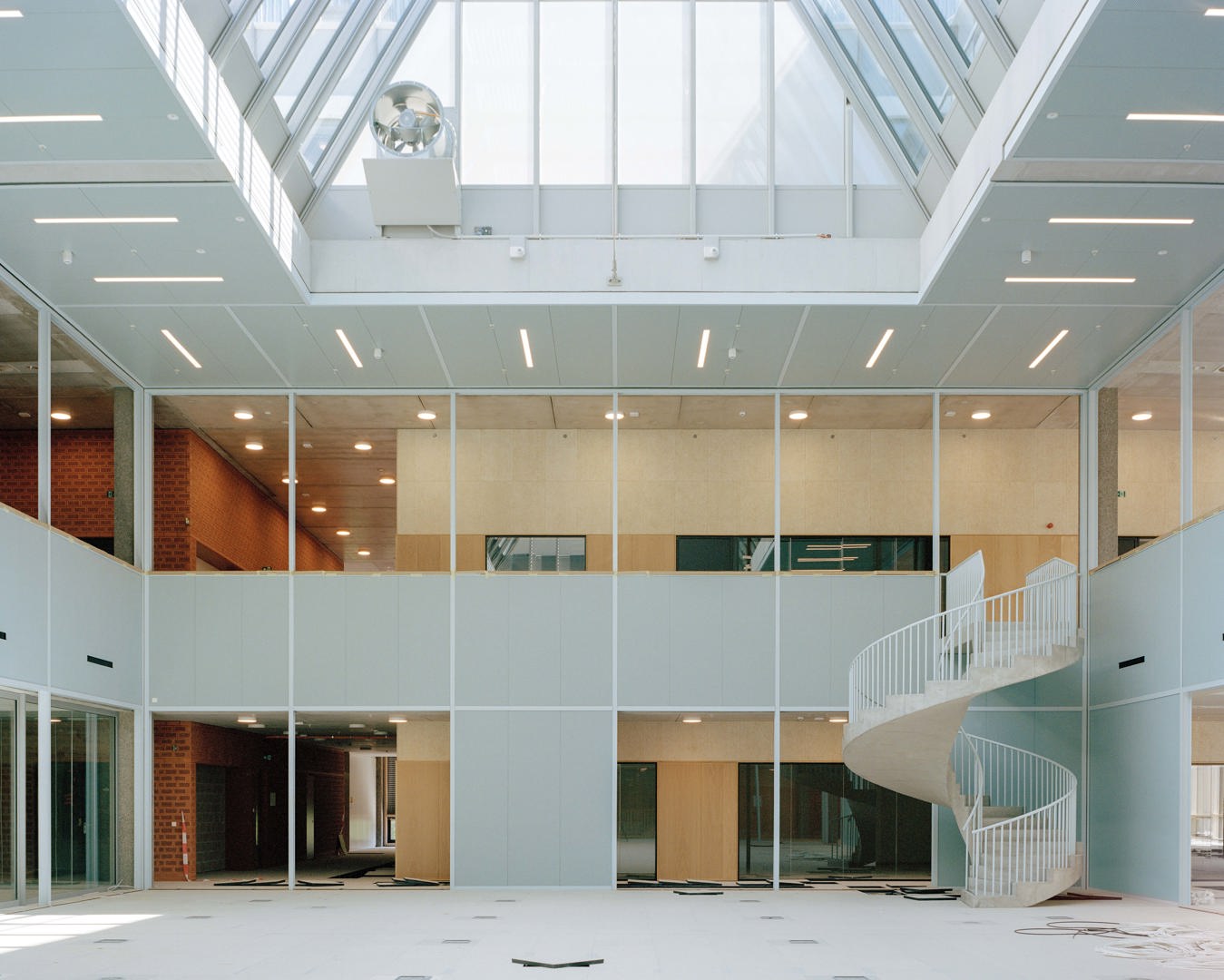 Het hoofdkantoor van de RTBF herdefinieert de typologie van het mediagebouw: het is niet langer een gesloten zwarte doos, maar een burgerlijke vitrine. Dit project toont aan dat een rationele en compacte structuur spectaculaire ruimtelijke rijkdom kan genereren door alleen te werken met doorsneden en licht. Het onderscheidt zich door de radicale integratie van de Nieuwe Manier van Werken: ruimte is niet langer een opgelegde beperking, maar een motor van wendbaarheid, die serendipiteit en samenwerking tussen redacties en studio's bevordert. Het is een architectuur van 'gerechtigde maat' die topprestaties en huiselijke gevoeligheid combineert, en biedt een model van soberheid en organisatorische flexibiliteit voor de publieke infrastructuren van morgen.