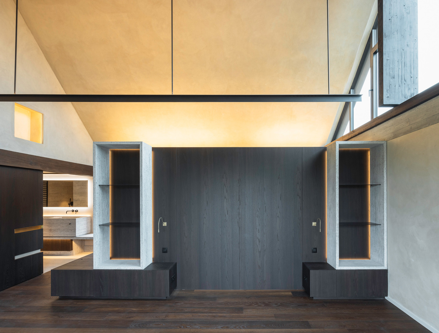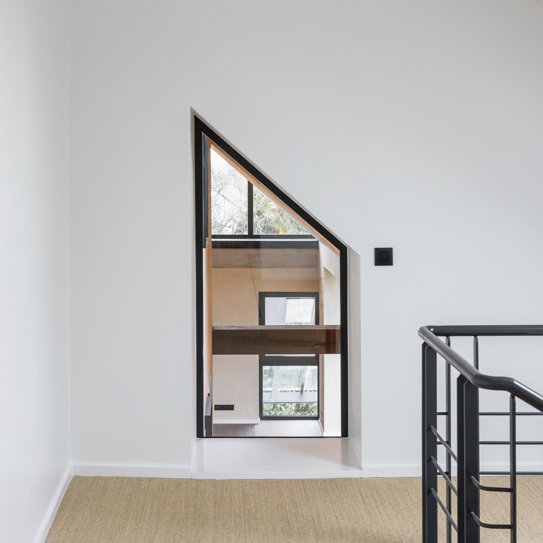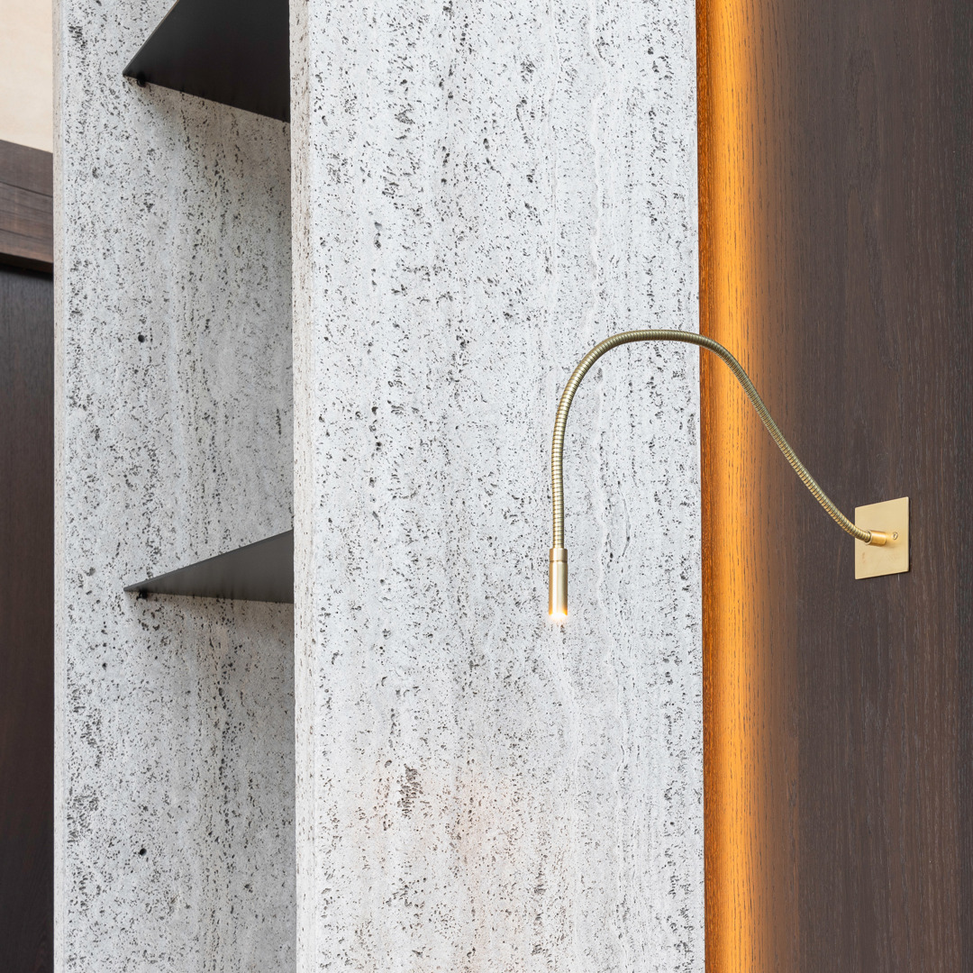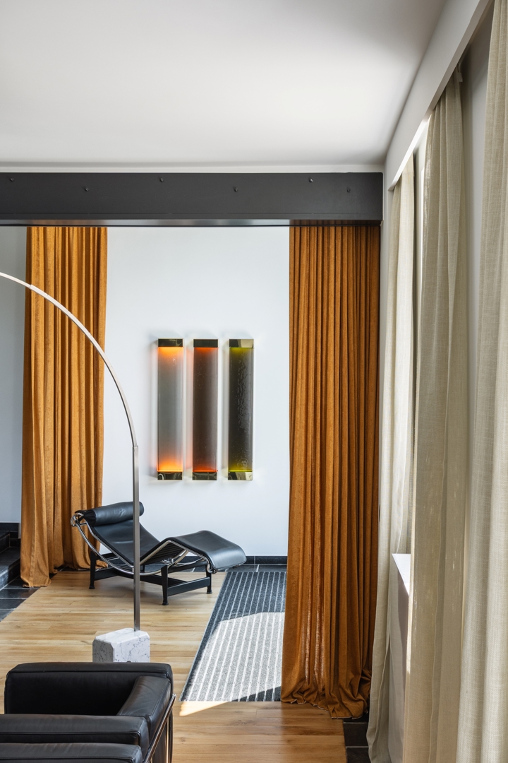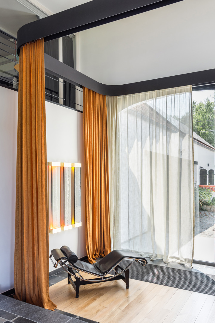 De belangrijkste uitdaging was het samenbrengen van verschillende eerdere ingrepen, die leidden tot een gefragmenteerde beleving van de ruimtes. De oplossing berust op gerichte en beheerste acties, die in staat zijn te verenigen zonder uit te wissen. In de woonkamer introduceert een modulaire rail een flexibiliteit in gebruik, terwijl het discreet blijft. Deze minimale ingreep structureert de ruimte zonder deze vast te zetten. Op de oorspronkelijk onbewoonbare bovenverdieping heeft een volledige renovatie geleid tot een samenhangend geheel met meerdere functies. De inrichting is gebaseerd op een doorlopend materiaalpalet en op maat gemaakte elementen om leesbaarheid en eenheid te waarborgen. Het project geeft de voorkeur aan precisie van ingrepen boven radicale transformatie.