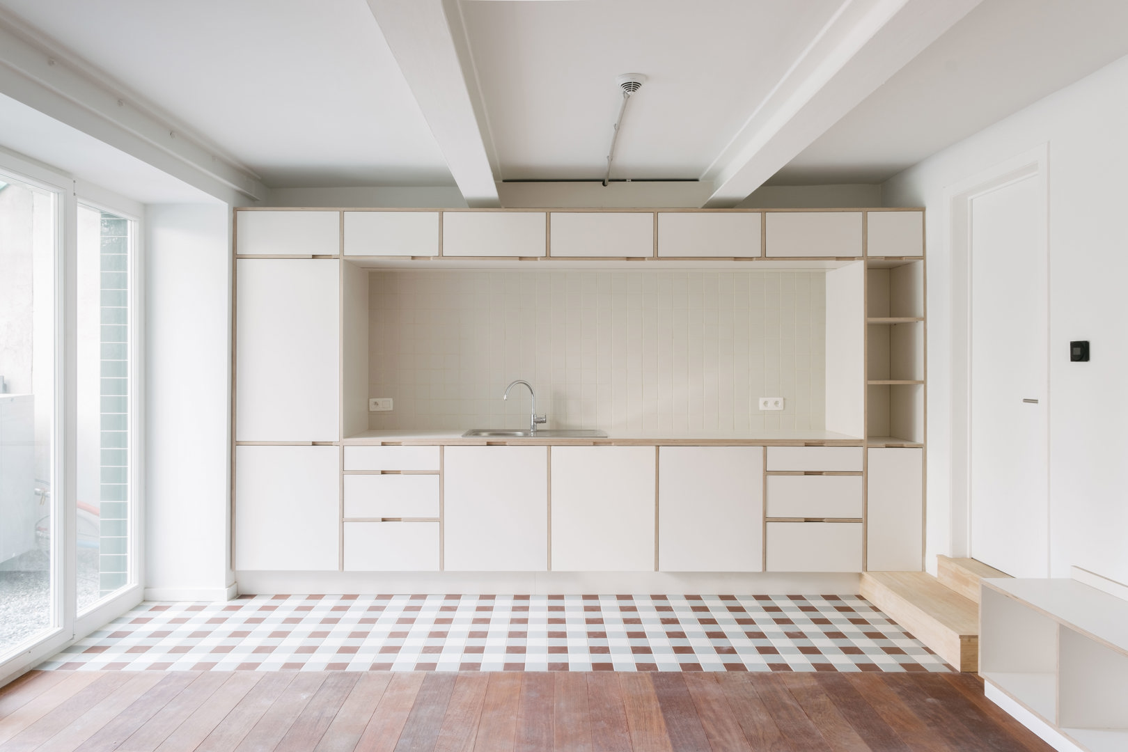 Het therapeutische programma vereist het vinden van gradaties van privacy tussen persoonlijke eenheden, ruimtes gedeeld door enkele bewoners en gemeenschappelijke ruimtes voor iedereen. Daartoe neemt het project de typologische kwaliteiten van het huis als uitgangspunt - opeenvolgende kamers tussen dragende muren. Ze worden behouden om gangen te vermijden: in de centrale kamer bevinden zich gemeenschappelijke ruimtes en een gedeeld terras tussen twee woningen; in de kamers met uitzicht op de straat en binnen het bouwblok, privé-eenheden; op de begane grond en op de tuinverdieping, ruimtes bestemd voor therapeutische follow-up evenals een grote gemeenschappelijke ruimte. Door de bestaande typologie opnieuw te interpreteren, is het project ook op de lange termijn ontworpen en maakt het meerdere en zich ontwikkelende gebruiksmogelijkheden mogelijk.
