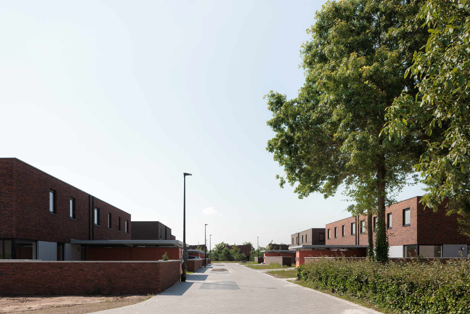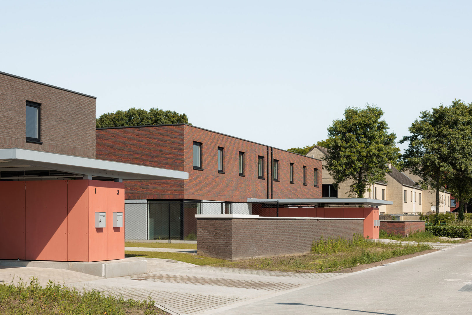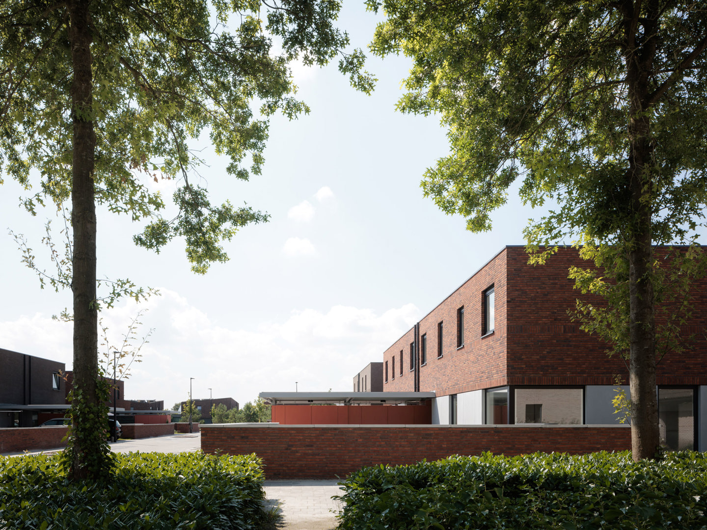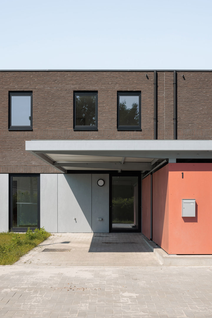 Het project Molenakkers in Retie realiseert 28 woningen binnen een sociale woonwijk met een mix van woonvormen in een uitgesproken groene omgeving. De opdracht bestond erin betaalbare woningen te ontwerpen met een hoge woonkwaliteit, ingebed in een landschap van parken, moestuinen en natuurontwikkeling. Ons voorstel bundelt verschillende woningtypes in acht vrijstaande woonclusters. Onder één dak worden drie tot vier woningen geschakeld, geïnspireerd op het archetype van de vrijstaande woning met tuin rondom. Zo ontstaat een bemiddelende schaal tussen individuele woning en collectief wonen, waarbij iedere woning maximaal contact behoudt met licht, lucht en groen.