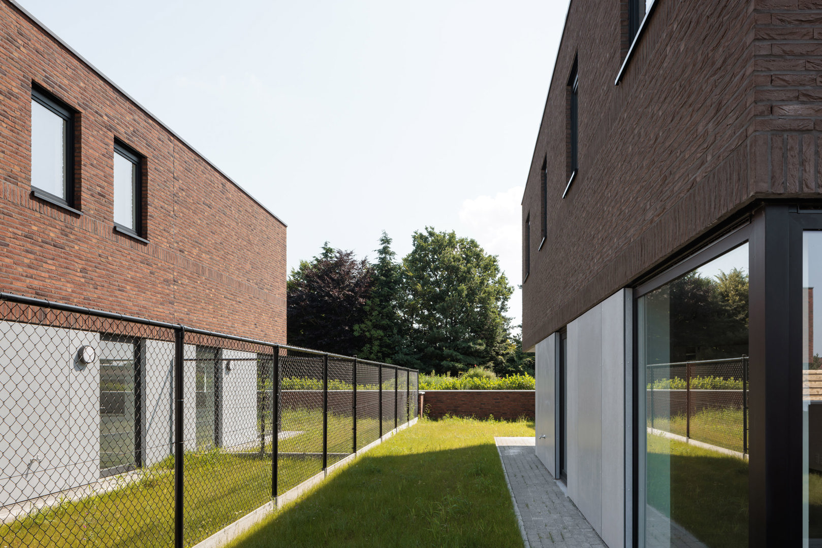 Duurzaamheid wordt benaderd op ruimtelijk, sociaal en constructief niveau. Door woningen te clusteren wordt de footprint beperkt en blijft een groot deel van de site groen en doorwaadbaar. Elke woning krijgt dubbele oriëntaties voor optimale lichttoetreding, natuurlijke ventilatie en een gezond binnenklimaat. De heldere planopbouw met een logisch structureel raster laat flexibiliteit en aanpasbaarheid op lange termijn toe. Materialiteit speelt eveneens een rol: robuuste baksteen en een betonnen plint zorgen voor een duurzame en onderhoudsvriendelijke architectuur. De integratie van tuinen, hagen en collectieve groene ruimtes versterkt biodiversiteit en stimuleert sociale interactie tussen bewoners.