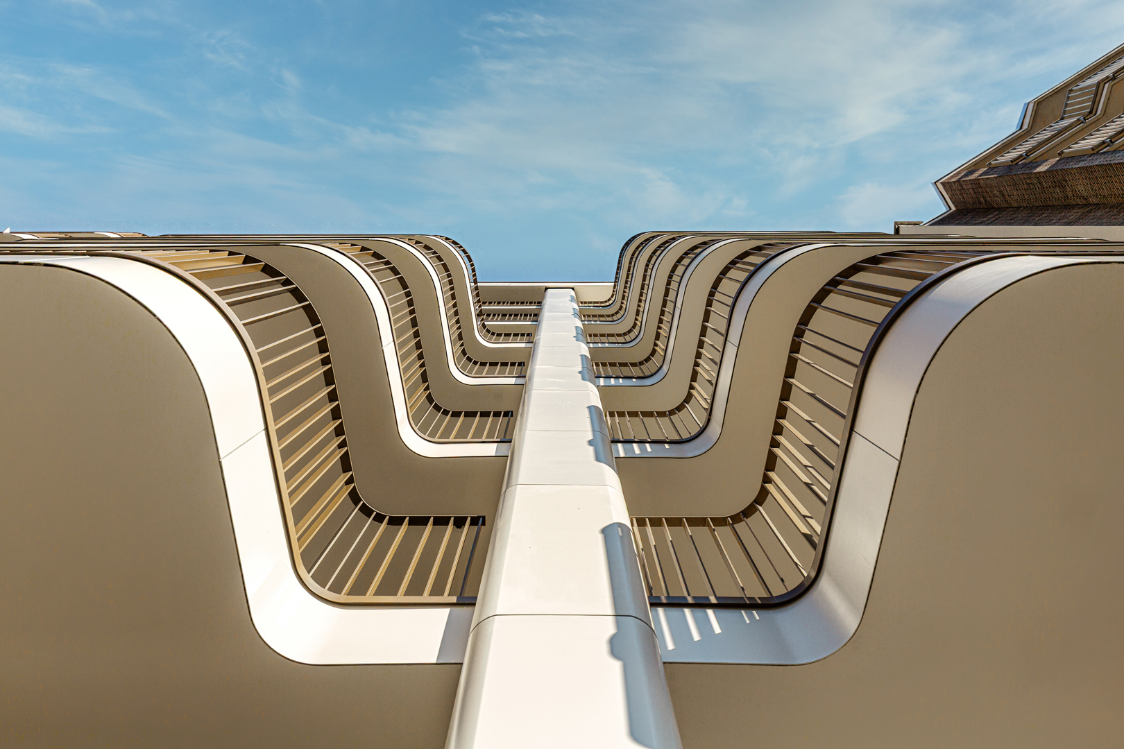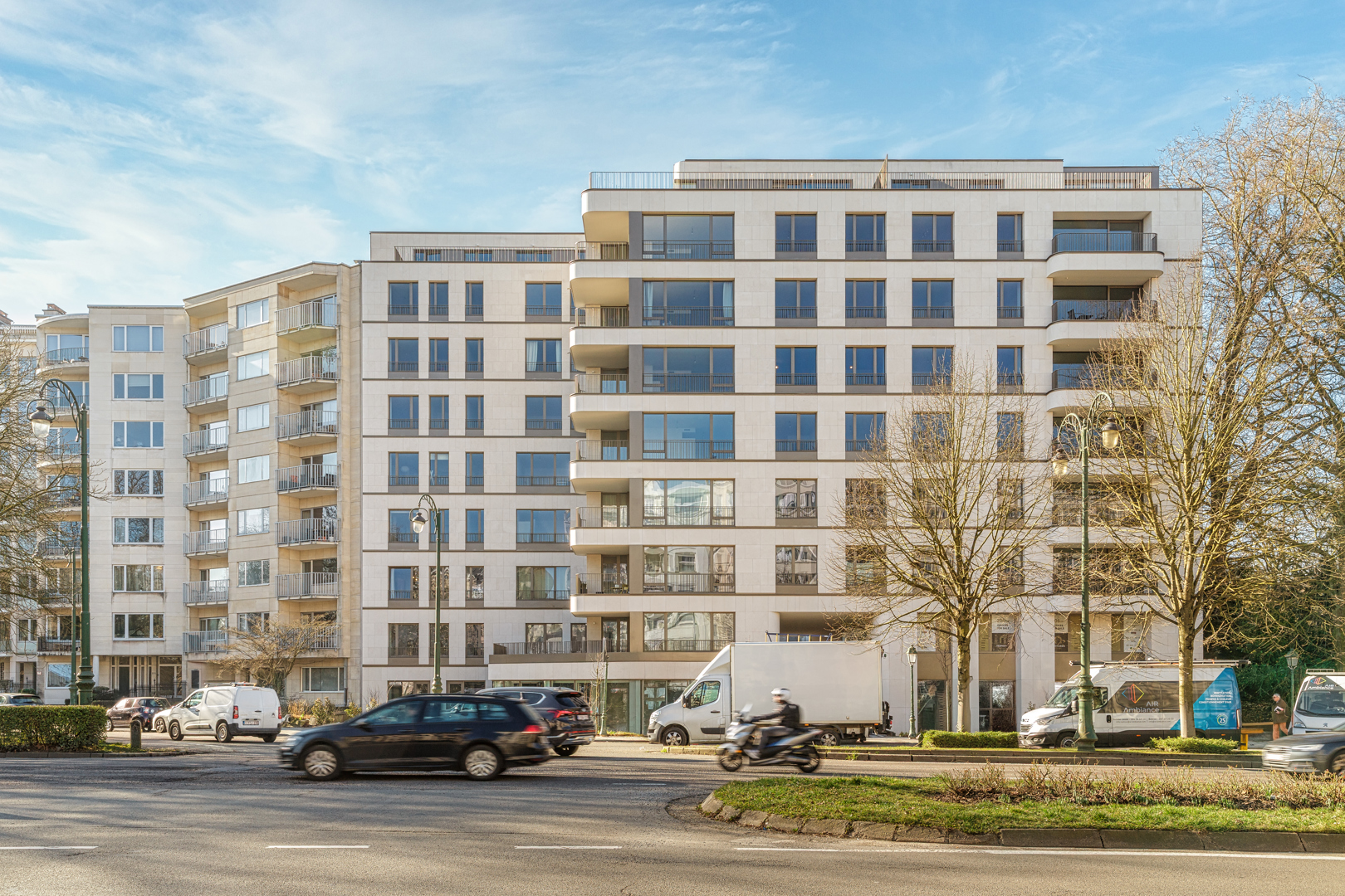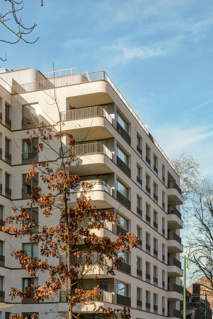 Een bestaand kantoorgebouw hergebruiken en transformeren tot een gerenoveerd gebouw bestemd voor kwaliteitsvolle huisvesting. Er is een inventaris gemaakt om te bepalen welke materialen en elementen van het bestaande gebouw hergebruikt kunnen worden. Het project integreert dus verschillende elementen om ze een tweede leven te geven. De algemene betonstructuur werd behouden evenals verschillende materialen. Bijvoorbeeld: de gevelsteen is hergeplaatst in de gemeenschappelijke nobele zones in de vorm van wandbekleding, onderhoudsroosters van de gevels zijn aangepast en gebruikt als scheiding/balustrade van de trappenhuizen en de deurpanelen zijn gedeeltelijk hergebruikt om ze in de kelders te installeren.