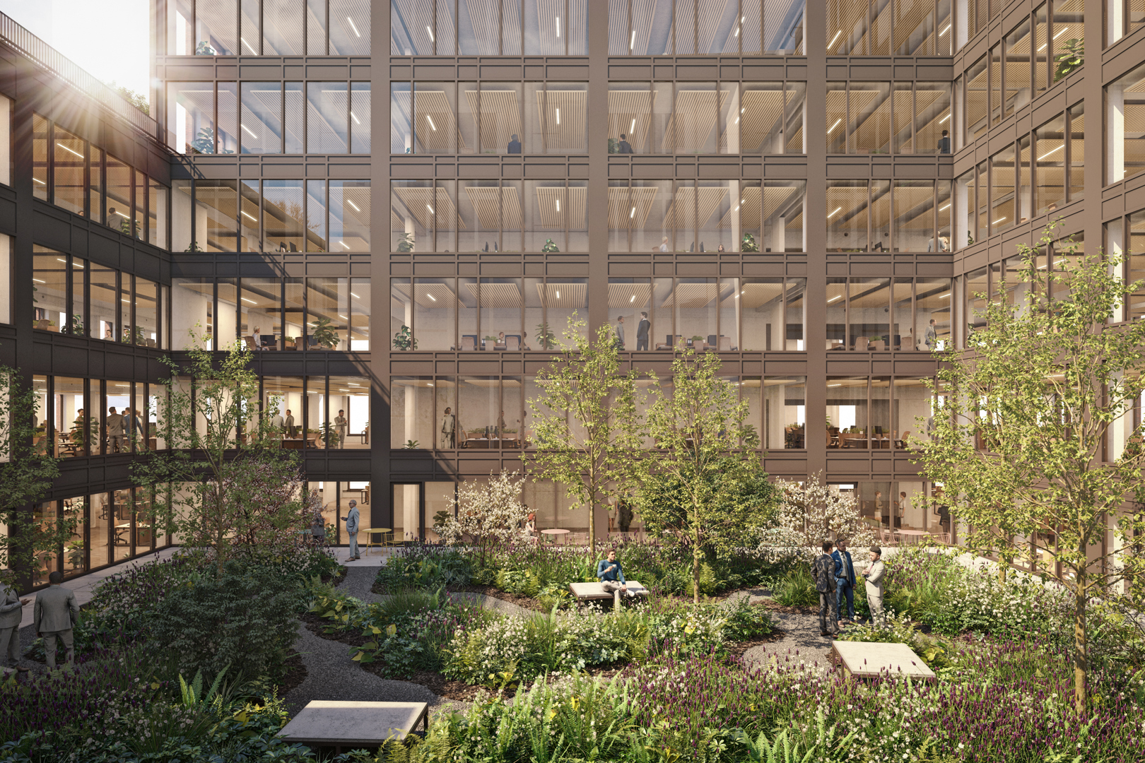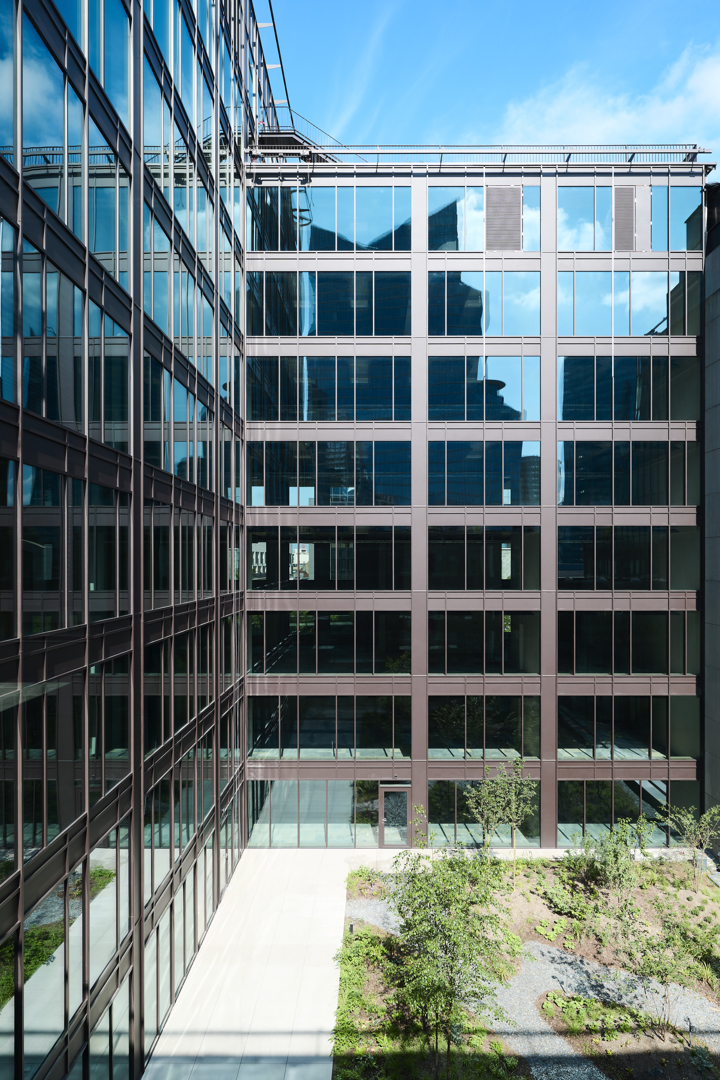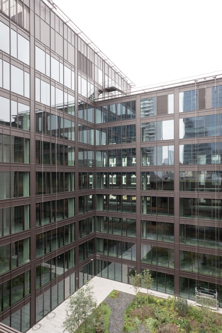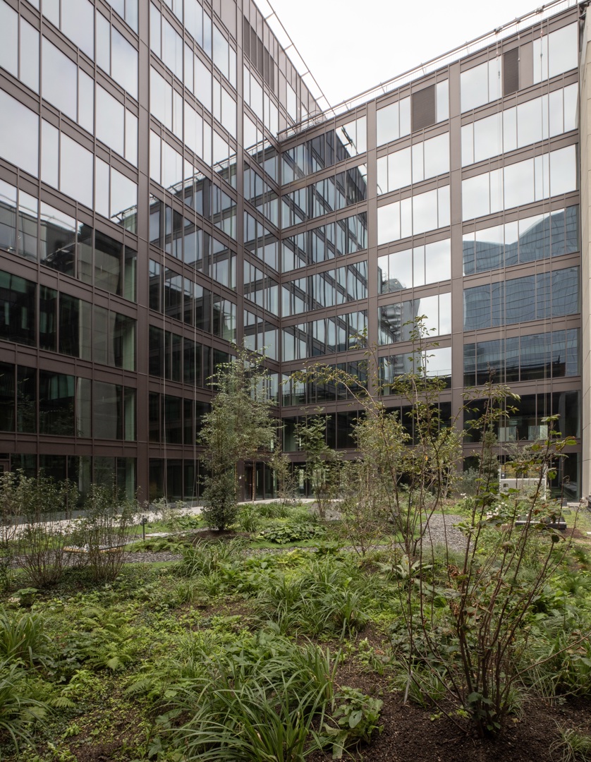Een van de belangrijkste kenmerken van The Arch is de ruimtelijkheid van de buitenruimtes, de toegankelijke tuinterrassen, de groendaken en de alomtegenwoordige begroeiing. Het landschapsprogramma sluit niet alleen perfect aan bij de milieu-uitdagingen, maar draagt ook actief bij aan de meerwaarde van het gebouw door op alle verdiepingen uitzicht op veel groen te bieden, wat een kwalitatief hoogstaande omgeving creëert voor het gebouwpersoneel. De tuinen spelen hier veel meer dan alleen een rol als ‘opvulling van de tussenruimtes’ van het gebouw; ze dragen rechtstreeks bij aan het imago van het gebouw en aan de leefomgeving van het gebouwpersoneel.