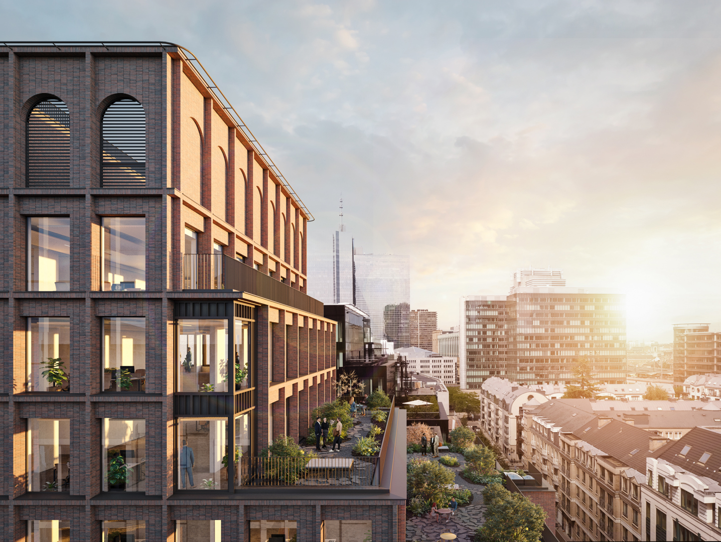 The Arch is een ingrijpend maar zuinig renovatieproject. Het project is ontworpen met het oog op duurzaamheid, waarbij de sloop tot het strikt noodzakelijke wordt beperkt en de kwaliteiten en onvolkomenheden die inherent zijn aan de structuur worden benut. Het gebouw, dat oorspronkelijk bestond uit een reeks technische platte daken (dakbedekking en grind), herbergt nu bijna 1.600 m² groendaken, waarvan 1.350 m² intensieve daken en 250 m² extensieve daken. Het landschapsproject moest rekening houden met de stabiliteitsbeperkingen die inherent zijn aan de bestaande structuur van het gebouw, een hoogwaardige groene omgeving bieden die bijdraagt aan het welzijn van de gebruikers van het gebouw, en een voorbeeldig concept ontwikkelen op het gebied van biodiversiteit en waterbesparing.