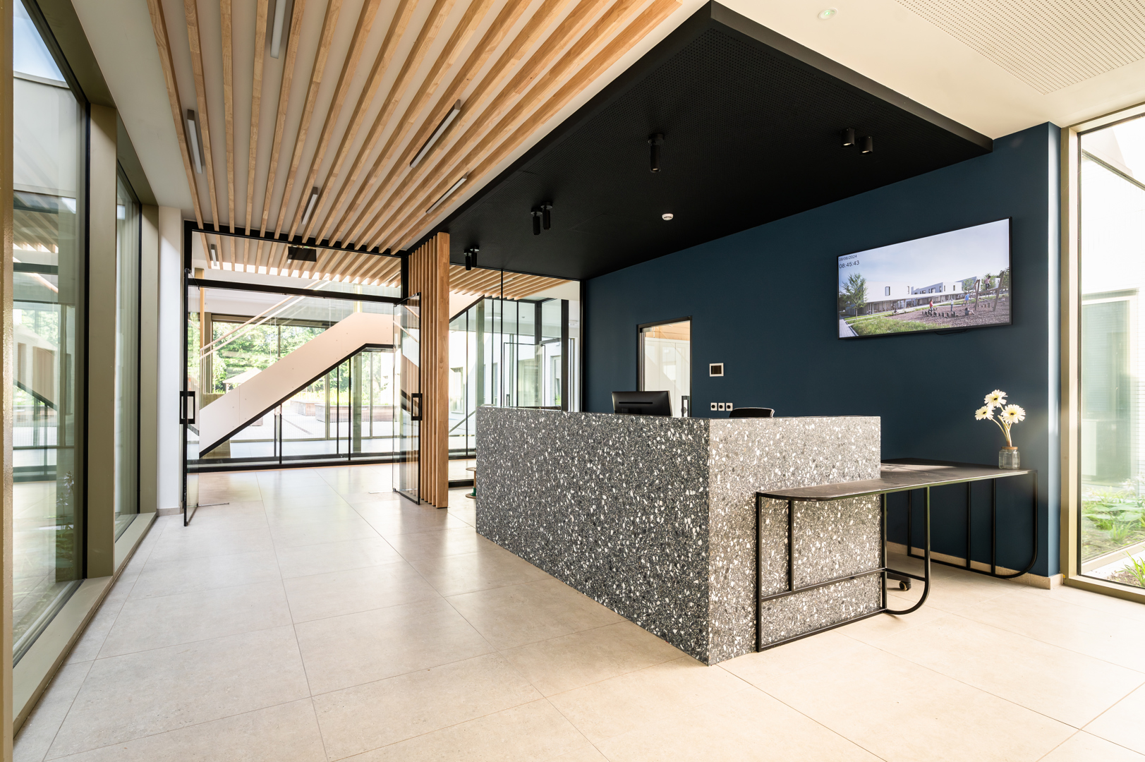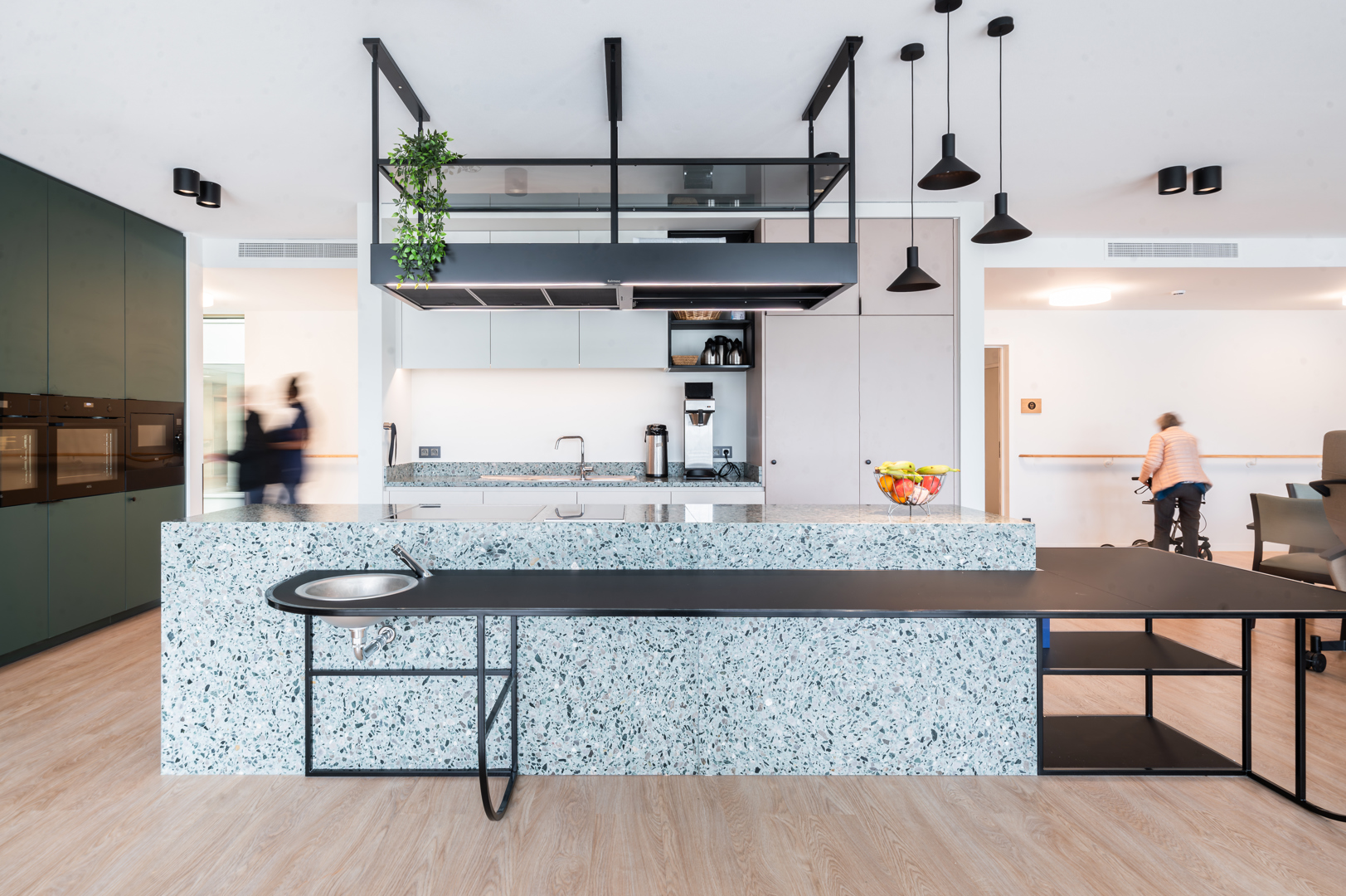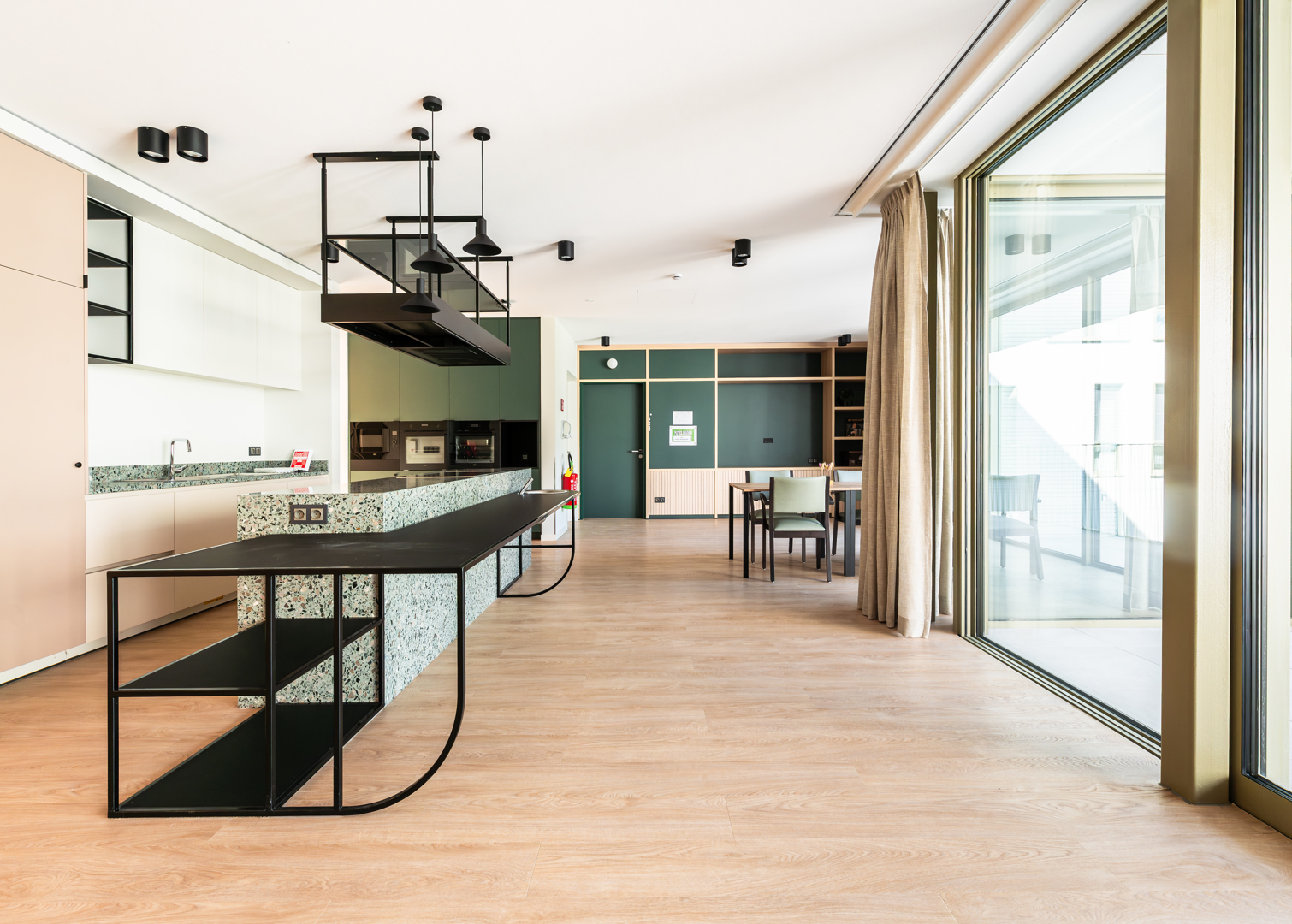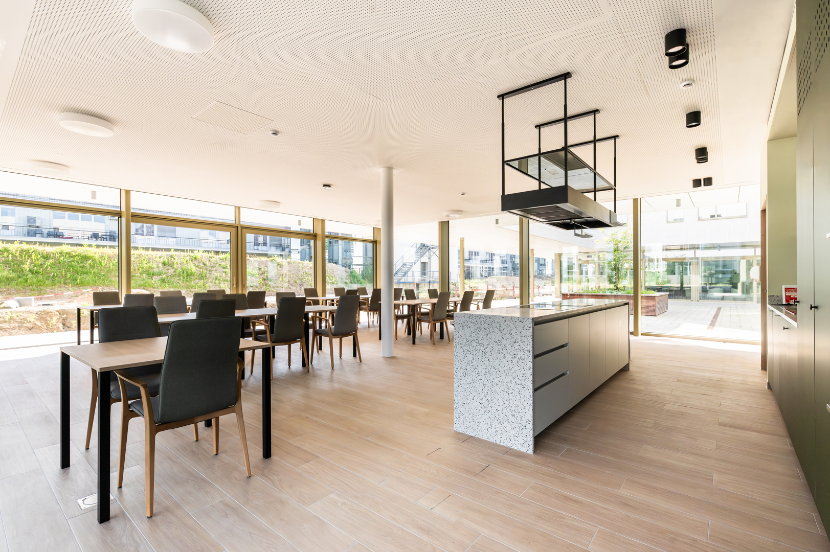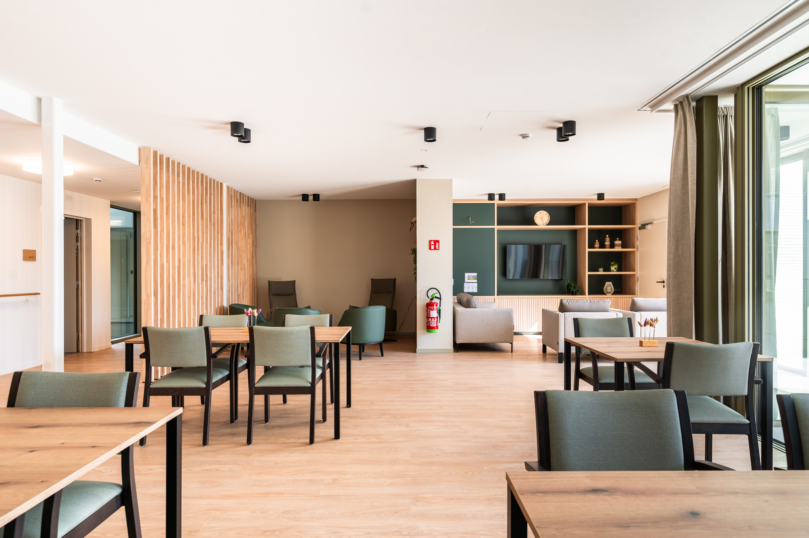 [Onze interieurarchitecten zijn op een transversale manier geïntegreerd in het ontwerpteam. Deze nauwe samenwerking heeft geleid tot een coherente en gevoelige benadering, waarbij interieurarchitectuur een centrale rol speelt in de algehele kwaliteit van het project. De nadruk is resoluut gelegd op het welzijn van de bewoners, ongeacht hun leeftijd. De ruimtes zijn ontworpen om het dagelijks gebruik te ondersteunen en een nieuwe huiselijke ritme te bieden, waarbij zowel comfort, gezelligheid als de eigen invulling van de ruimtes worden bevorderd. Hier is interieurarchitectuur werkelijk in dienst van de kwaliteit van leven, door het creëren van warme, geruststellende en aan verschillende momenten van de dag aangepaste sferen.]