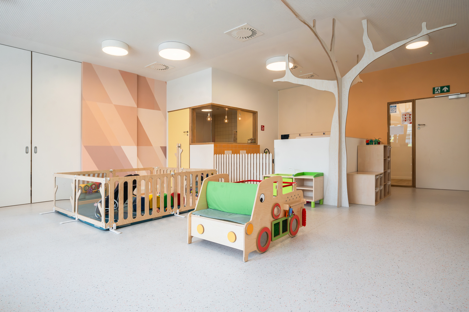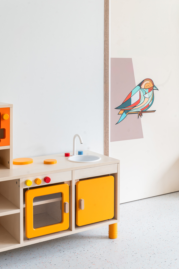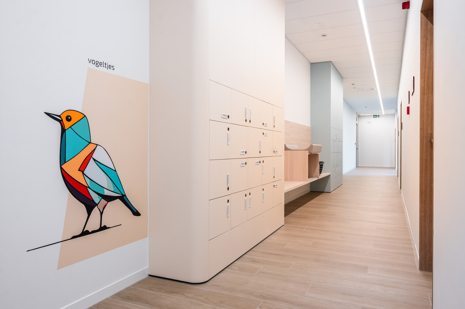 [Uitdaging op functioneel niveau, wij hebben gekozen voor een maximaal aan gebruiksvriendelijkheid. Er is geen centrale keuken. Elke wooneenheid heeft zijn eigen keuken. De wooneenheden hebben ook een woonkamer, een TV-kamer en een leeshoek. Uitdaging op het gebied van het verminderen van het 'utilitaire' of klinische aspect, dat gewoonlijk voorkomt in veel andere rusthuizen. In de gemeenschappelijke ruimtes en de doorlopende zones hebben we ons gericht op een elegante afwerking met warme tinten, natuurlijke materialen, verfijnde verlichting en comfortabel meubilair. Voor de crèche: de uitdaging was om een duidelijke differentiatie tussen de verschillende kamers en functies te waarborgen. Elke woongroep heeft een uniek thema of kleuraccent.]