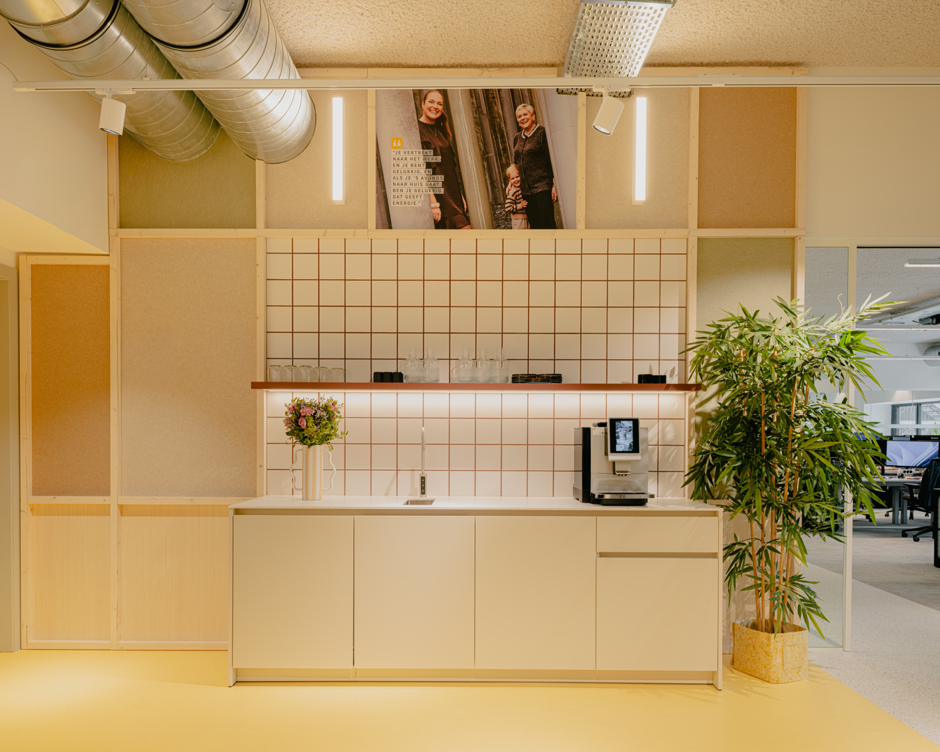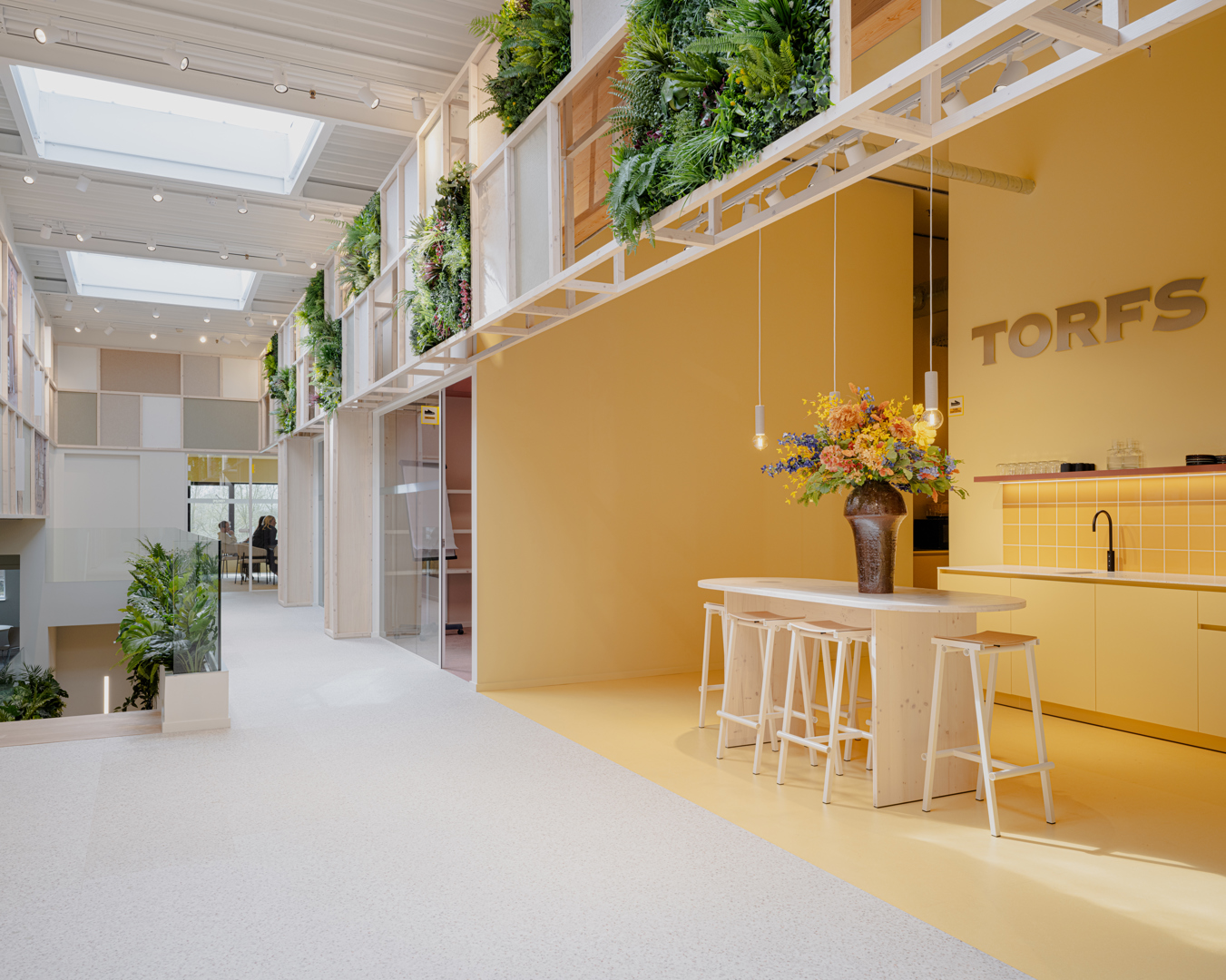 Het project draagt bij aan het welzijn van gebruikers door een werkomgeving te creëren die inzet op verbinding, daglicht en ruimtelijke beleving. Door alle medewerkers op één campus samen te brengen, wordt de interactie tussen teams versterkt. De centrale circulatie en strategisch geplaatste ontmoetingsplekken, zoals kitchenettes, stimuleren informele contacten. Werkplekken aan de gevel en de toevoeging van dakkoepels zorgen voor overvloedig natuurlijk licht, wat het comfort en de productiviteit verhoogt. De warme, herkenbare Torfs-identiteit met kleur, planten en hout draagt bij aan een aangename, menselijke werksfeer waarin medewerkers zich betrokken en goed voelen.