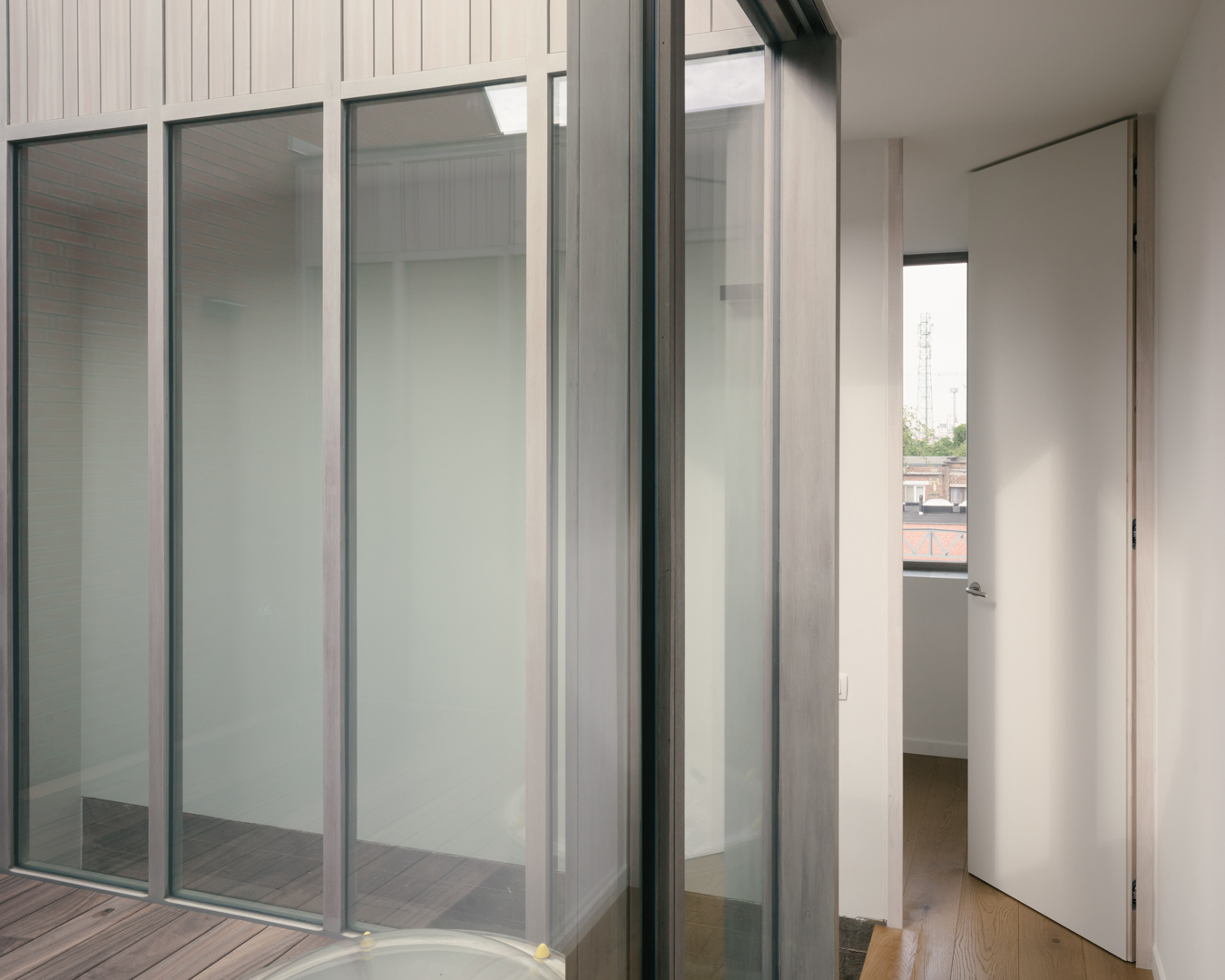 Het project is een resultaat van een intensieve zoektocht naar hoe men in de stad dicht bij elkaar kan wonen met behoud van privacy. Licht wordt zo binnengetrokken (via de vide) dat het hele huis er van geniet, zonder directe inkijk van dichte buren. Binnen- en buitenruimtes worden gekoppeld met elk hun mate van privaat – publiek. Samen kan maar alleen blijft steeds mogelijk. Op deze manier blijft leven in een stad mogelijk! Intensieve ontharding van de buitenruimtes zorgen voor groen en zuurstof voor de bewoners, voor de stad. In plaats van bouwen op een mooi perceel wordt een grouwe binnenplek omgevormd tot een kleine plek in de stad waar het bouwblok weer lucht en licht kan krijgen!