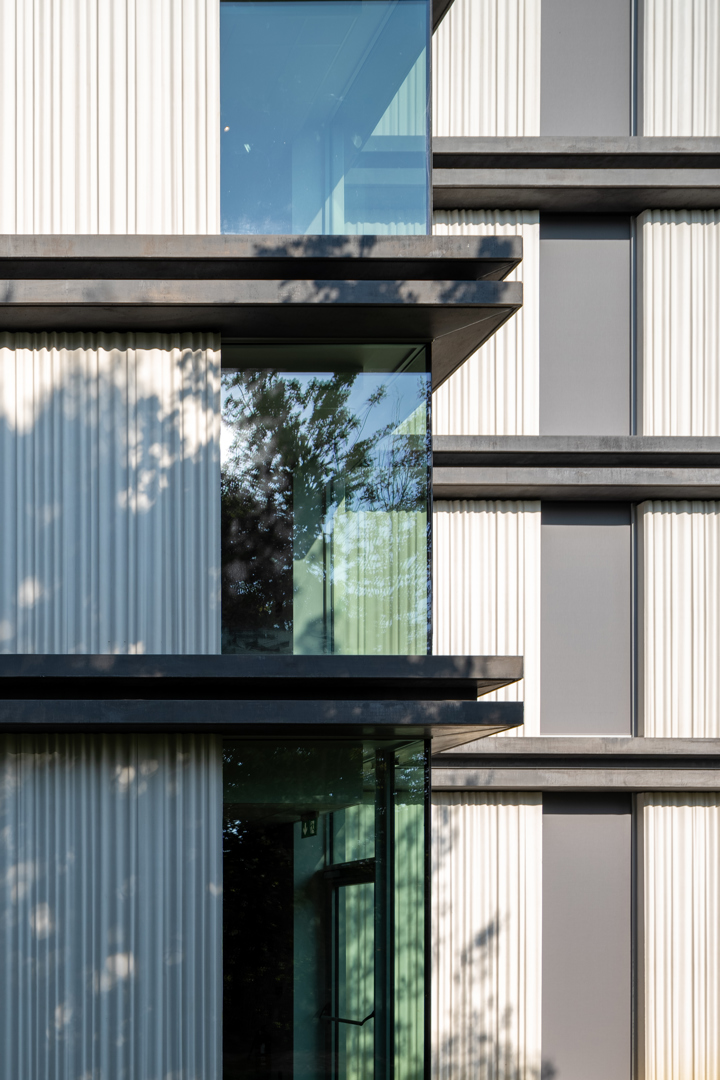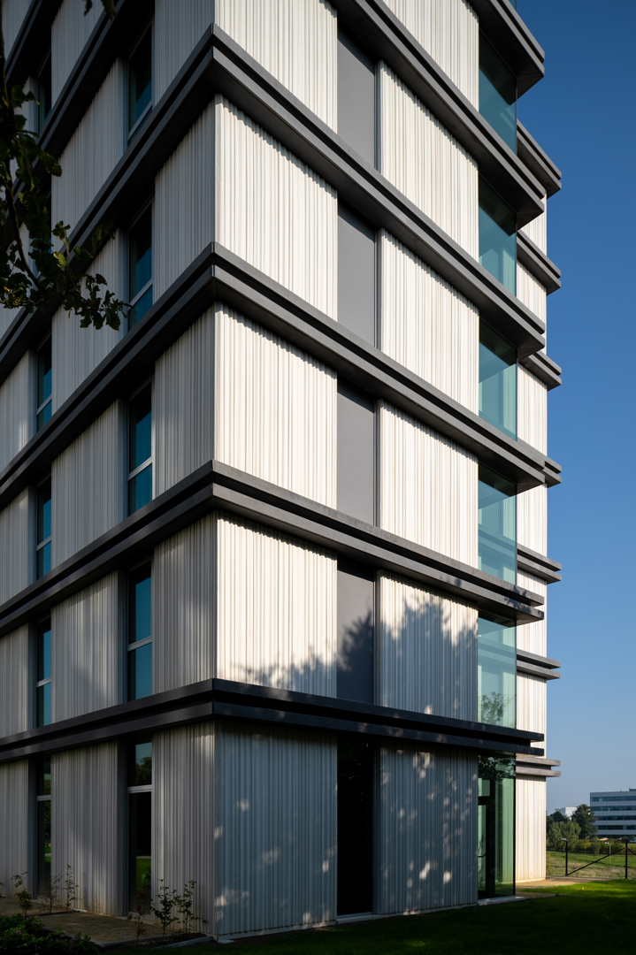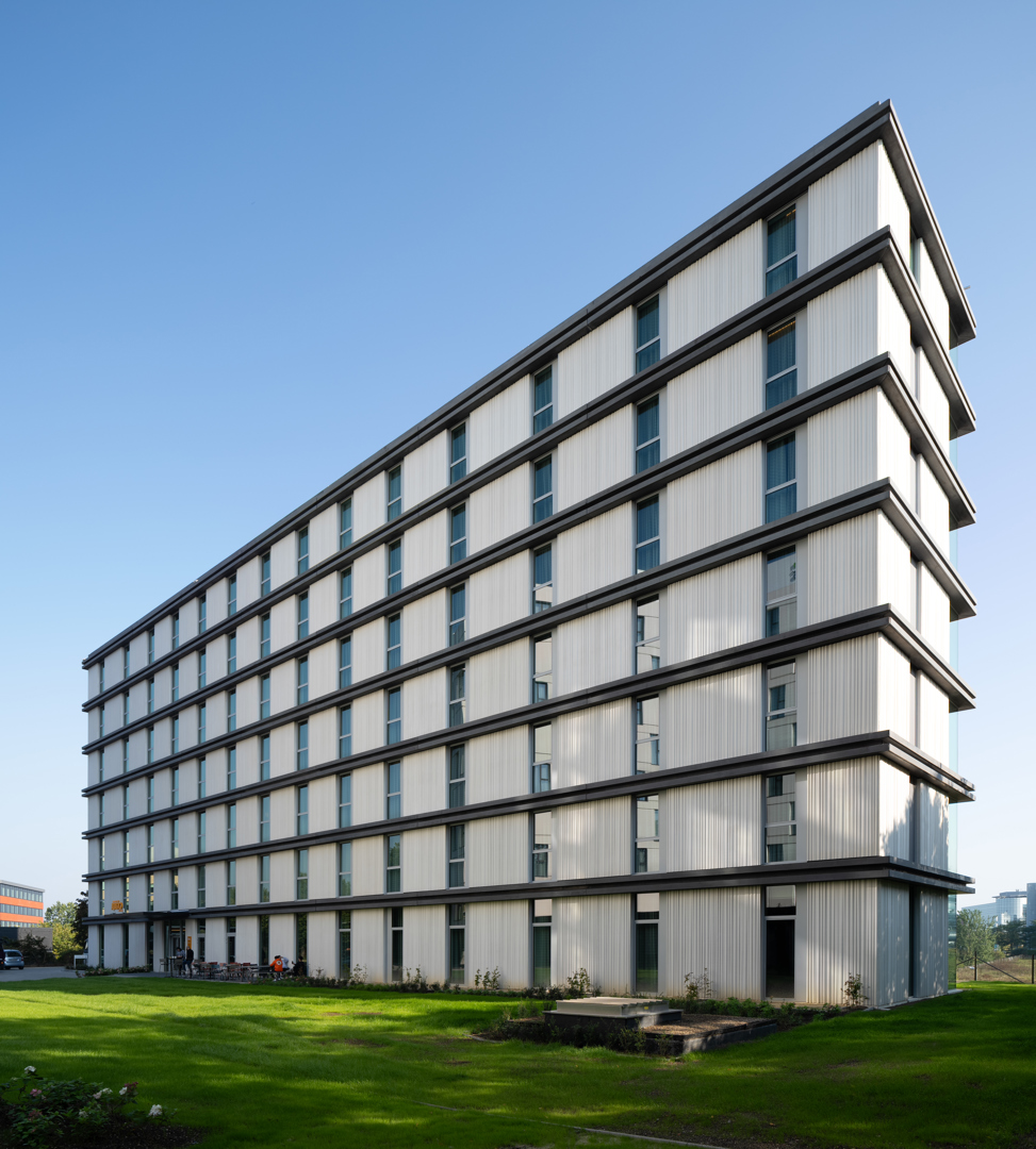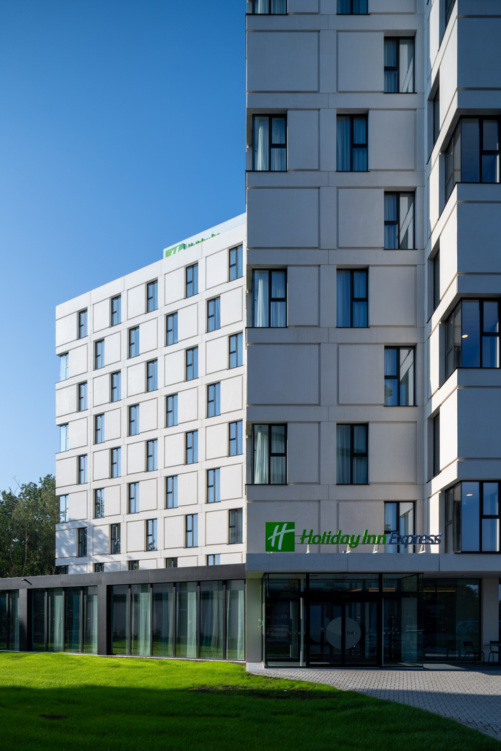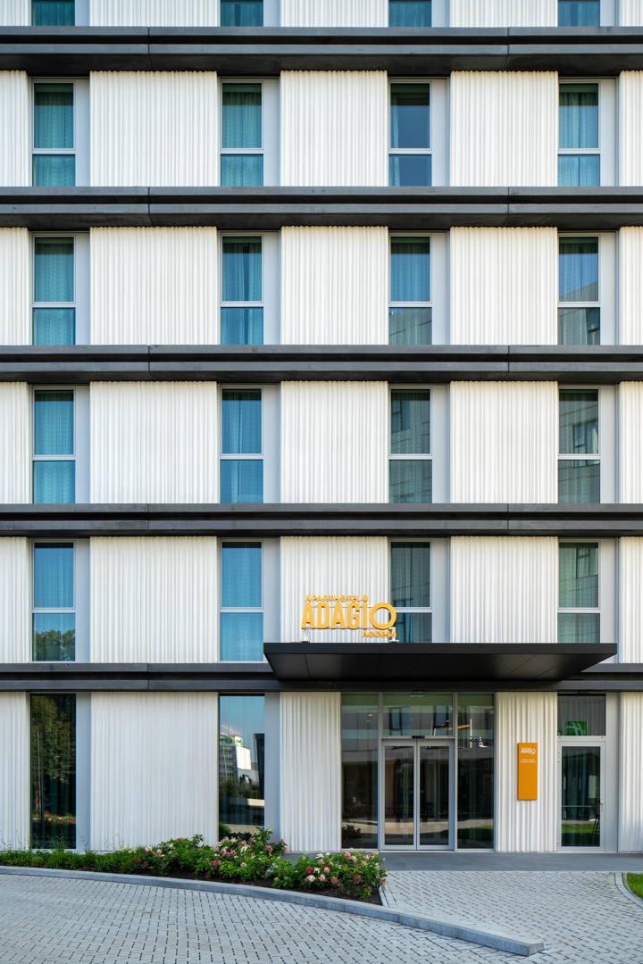 De twee hotels vormen afzonderlijke entiteiten met een duidelijke verwantschap. Het westelijk gelegen Trinity is een markant drietandig volume van 9 bouwlagen met 208 kamers, een alzijdige rastergevel en een levendige raamverdeling. Het gelijkvloers omvat ondersteunende functies zoals een restaurant. Het oostelijk gelegen U-flats is een 7-laags aparthotel met 160 kamers voor korte en middellange verblijven, inclusief kitchenette, fitnessruimte en guest laundry. De horizontale gevelbelijning met donkere boorden en afwisselende beglazing en betonnen panelen creëert een sierlijk reliëf dat warmte en elegantie toevoegt. Beide volumes combineren functionaliteit, contextbewust ontwerp en hoogwaardige materialisering tot een harmonieus geheel.