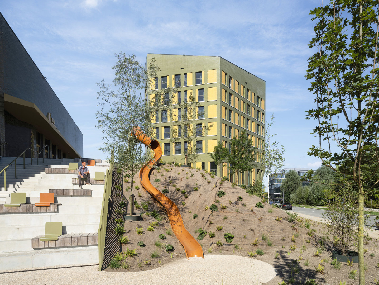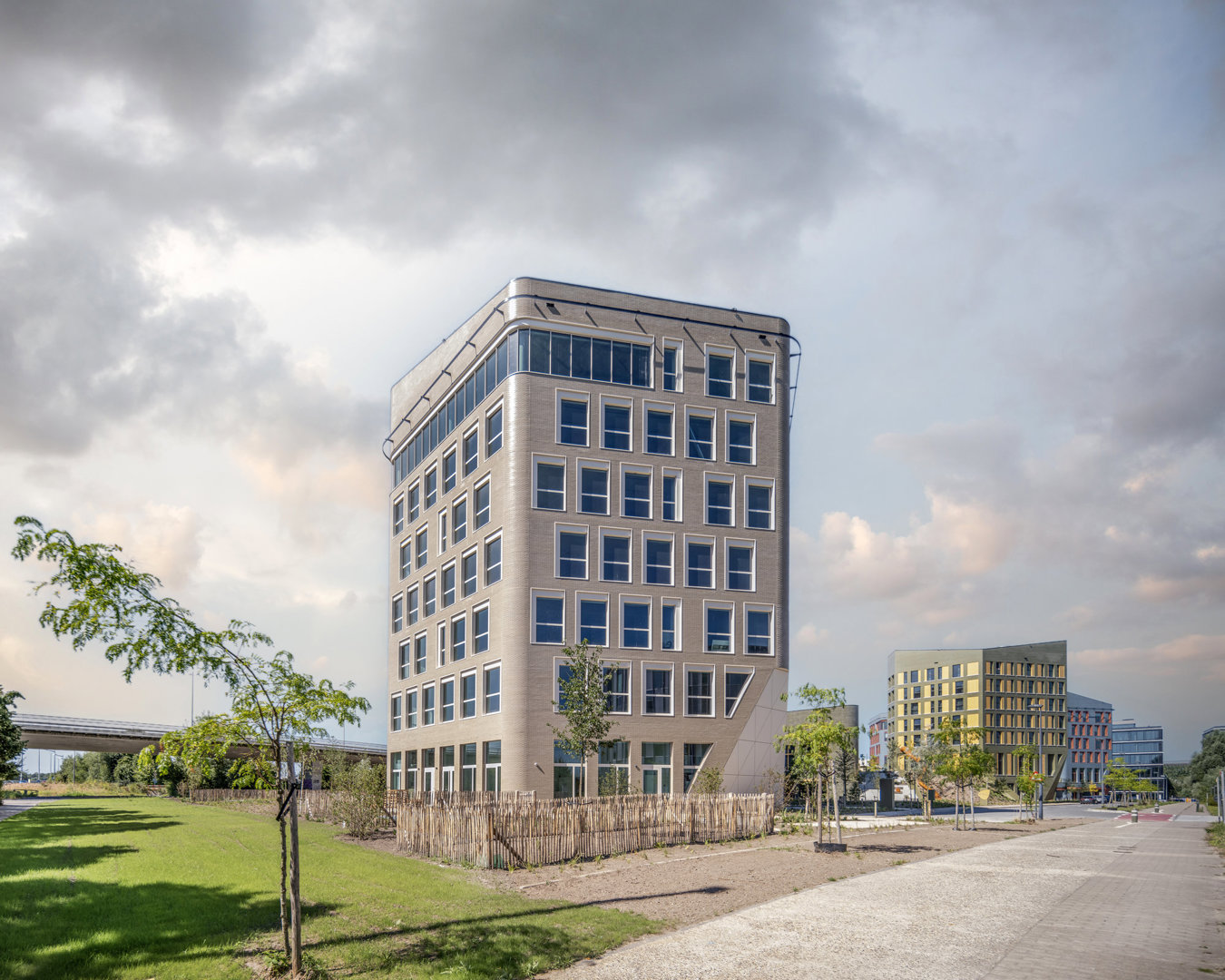 Gelet op de omvang en vorm van de site verenigt het project schijnbaar tegenstrijdige randvoorwaarden. Het verzoent water en vuur: – Het creëren van een uitgesproken groene omgeving, met meer dan 1.000 onzichtbaar geïntegreerde fiets- en autoparkeerplaatsen. – Het realiseren van meer dan 22.500m² hoogwaardige vloeroppervlakte, met gebouwen dat aanvoelen als paviljoenen in een open parklandschap. – Het aanbieden van maximale flexibiliteit en lichtrijke, verhuurbare ruimtes, zonder te vervallen in het stapelen van anonieme ‘cubicles’. – Het creëren van een rijk palet aan plekken, sferen en ruimtelijke ervaringen, binnen één coherent en leesbaar geheel. – Het naadloos inpassen van een uitgesproken, atypische architectuur in zowel de bestaande als toekomstige context van de omgeving.