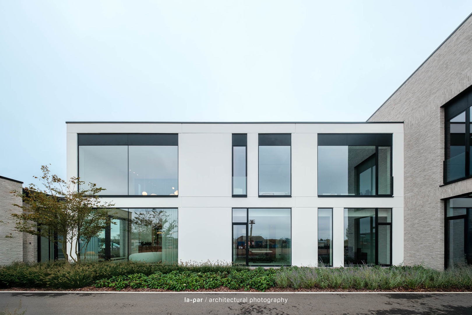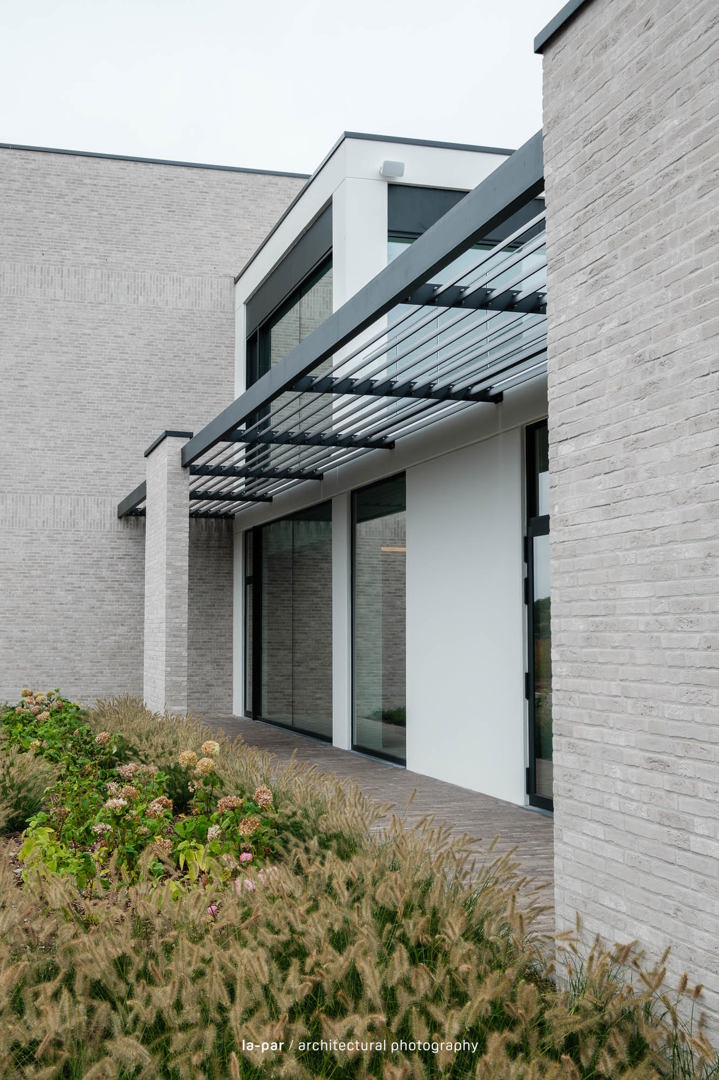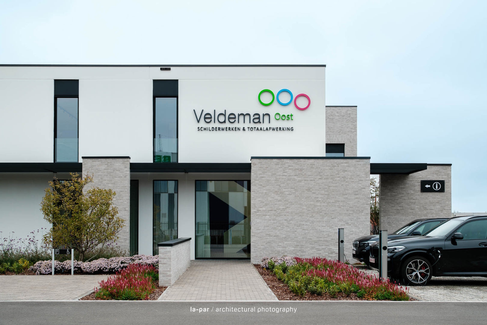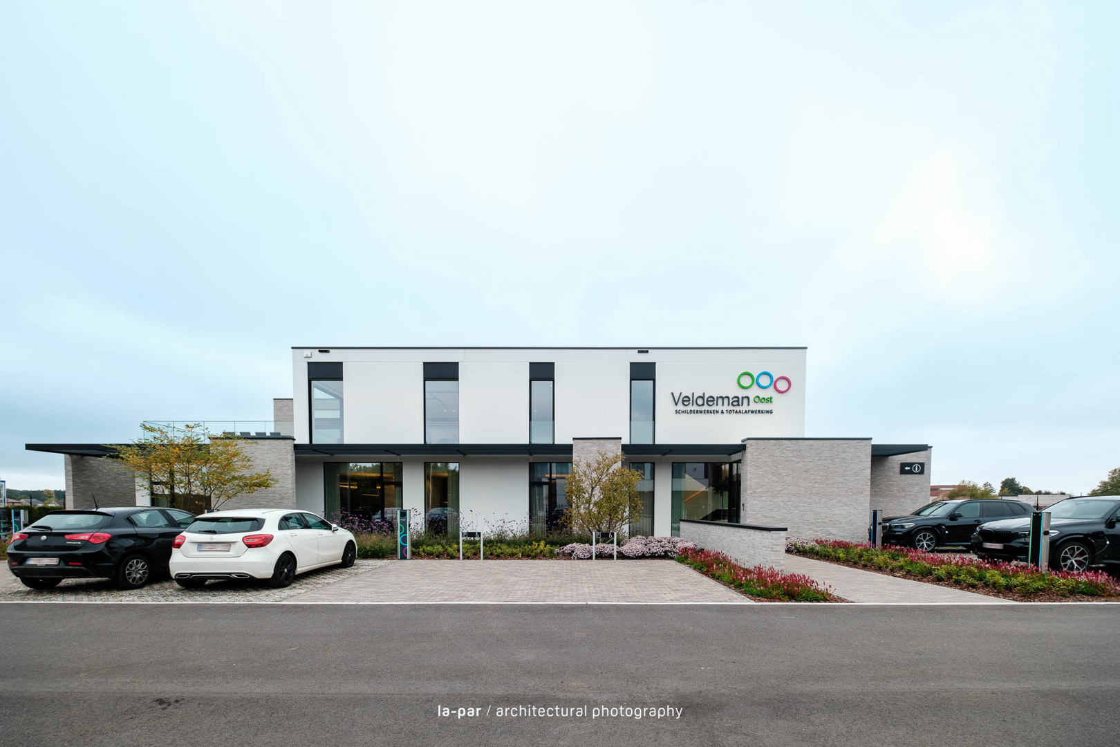 Veldeman Oost is een sterk groeiend bedrijf in interieurafwerking. Vanuit een beperkte kantoorruimte groeiden Peter en Vital naar een ambitieus project op een perceel van 1 ha in Opglabbeek, met een kantoor voor 50 medewerkers en een industriehal van 1.200 m², uitbreidbaar tot 2.400 m². Het ontwerp integreert architectuur, interieur en omgeving tot één geheel, met aandacht voor vakmanschap, detail en afwerking. Een efficiënte indeling met centrale kern en lichtrijke werkplekken zorgt voor een kwalitatief werkklimaat. Materialen zoals betonpanelen, lichtgrijze gevelsteen en zwart aluminium worden gecombineerd met groenaanleg voor een evenwichtige uitstraling. Het resultaat is een functionele en warme werkomgeving waar werken, overleggen en ontspannen samenkomen.