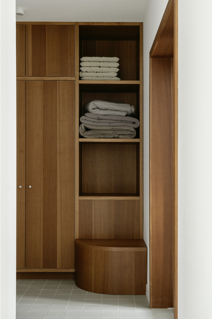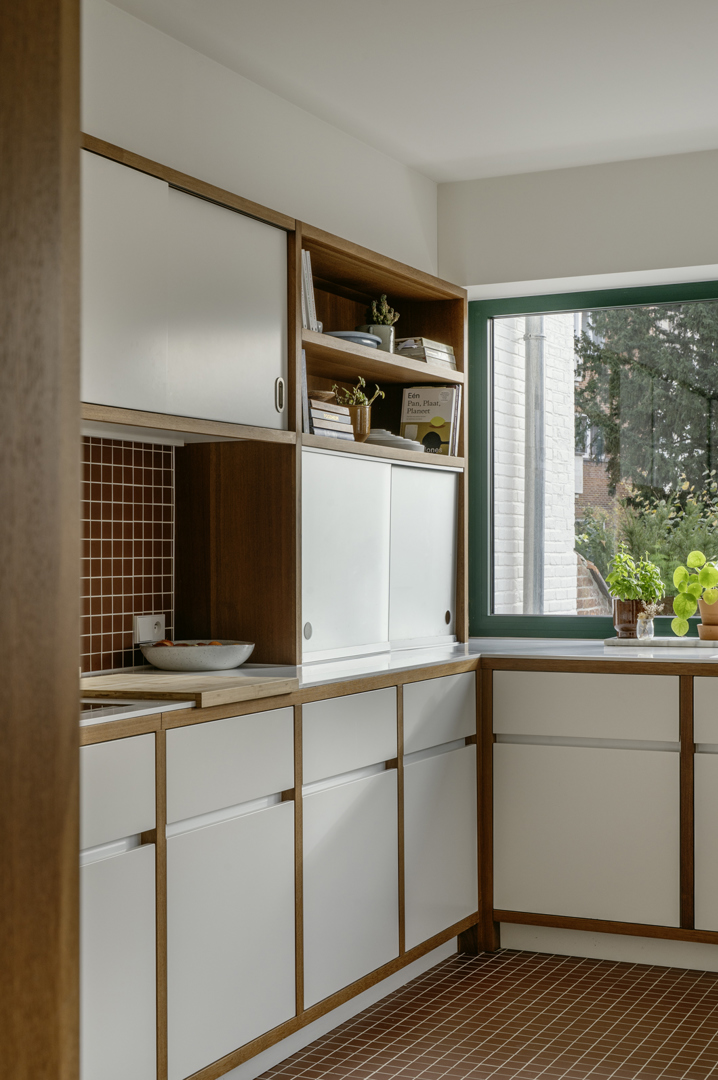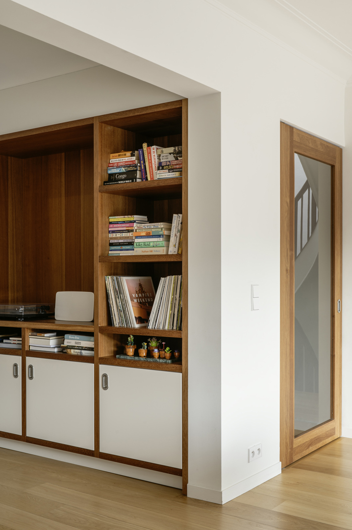 De opdrachtgevers droomden er al langer van om in deze buurt een woning te vinden. Hun aankoop bracht deze droom in vervulling; ook hun wens naar voldoende vloeroppervlakte en een zuidgerichte tuin werd met deze rijwoning ingevuld. Enkel de indeling en het interieur voldeden niet aan hun verwachtingen. Na uitgebreid overleg en het aanvoelen van de woning, uitzichten, belichting en oriëntatie, hebben we getracht de planopbouw geheel vanzelfsprekend te maken. Door de interieurlaag te laten samenvallen met de tijdsgeest van de woning en een nieuwe detaillering hierop af te stemmen, verkreeg het geheel een grote ‘feel good’-factor. De opdrachtgevers konden dit ten zeerste appreciëren en de warme, natuurlijk aanvoeldende materialisatie van het geheel, maakte het voor hun een echte thuis.