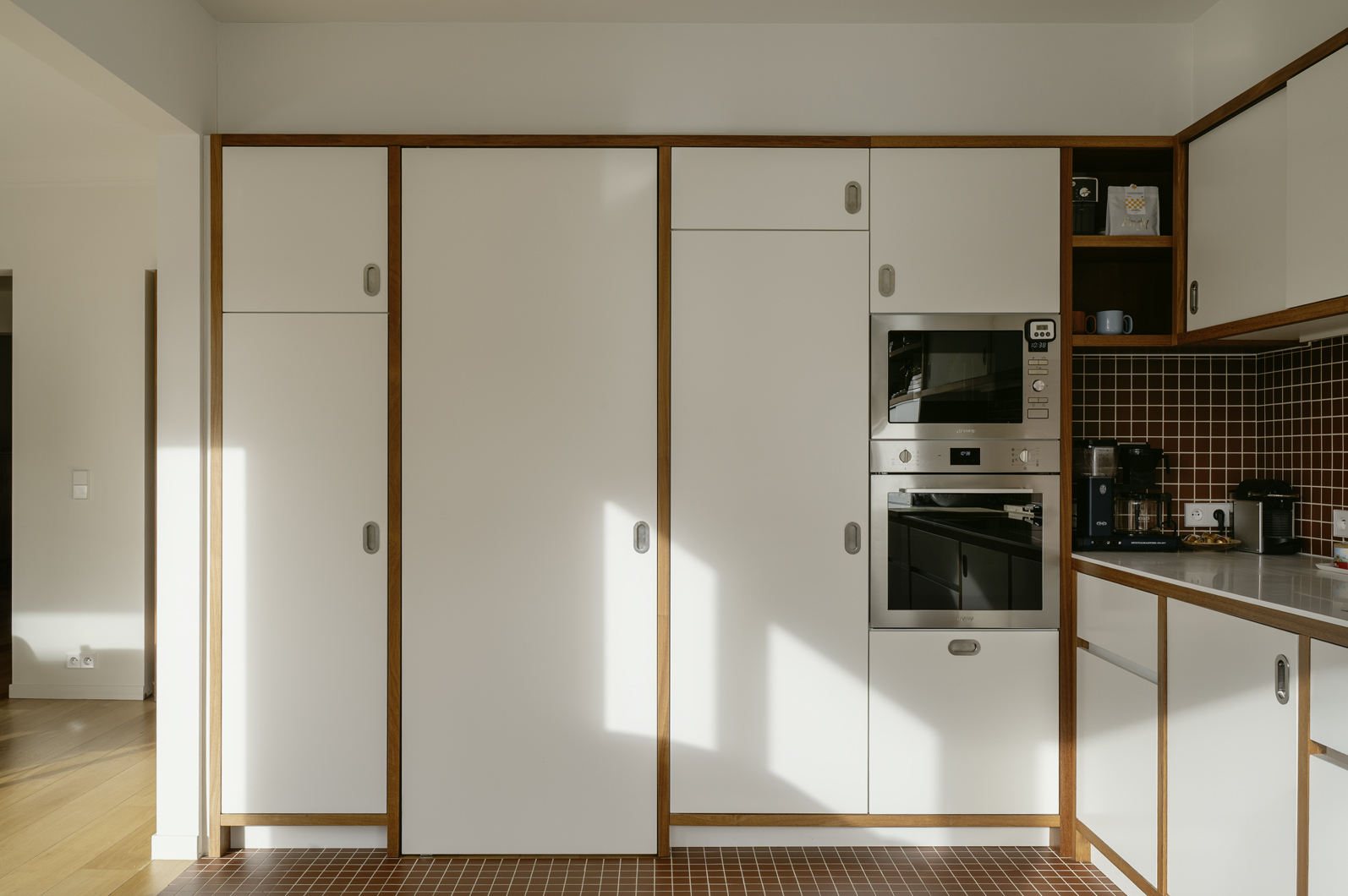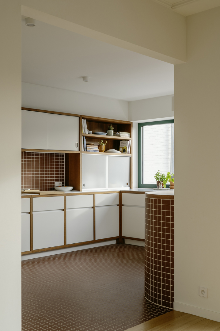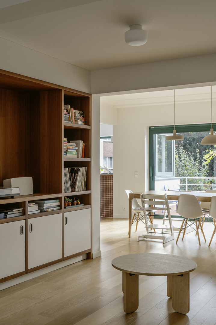 Door een juist samenspel te ontwerpen waarbij het oude en het nieuwe één coherent geheel vormen, verkrijgt de woning een groot gehalte aan bewoonbaarheid. Het is niet de stijl die bepaalt, maar de ruimte die juist komt aan te voelen en daardoor een blijvend karakter verkrijgt. De nieuwe ontwerpen van de keuken en badkamer hebben in detail ook reminiscenties naar de bouwperiode van de woning en toch zijn ze van vandaag. Door de beperkte, doch juiste structurele ingrepen en de op elkaar afgestemde materialisatie krijgt de woning iets universeels dat door de meesten gesmaakt wordt. Het is een hedendaagse inrichting met karakter en dit zonder te vervallen in de vluchtige modieuze trends. Het is een ontwerp op maat van het gebouw en niet geënt op een individuele wens van een opdrachtgever.