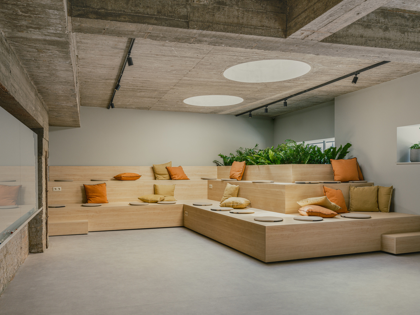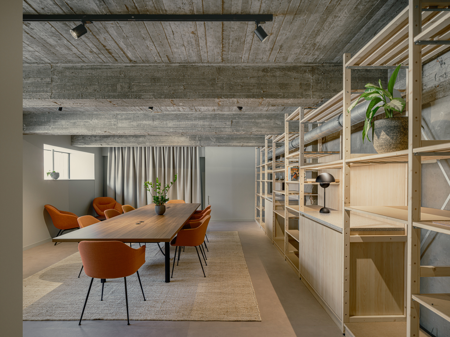 Het project zet sterk in op hergebruik en het verlengen van de levensduur van de bestaande structuur. Door het gebouw te transformeren in plaats van te vervangen, werd de embodied carbon aanzienlijk beperkt. Bestaand meubilair en elementen werden hergebruikt of aangepast, aangevuld met zorgvuldig geselecteerde vintage stukken. Modulaire wandsystemen maken toekomstige aanpassingen mogelijk zonder sloopafval. Daarnaast werd de operationele impact verlaagd via verbeterde isolatie, hoogperformante beglazing, energie-efficiënte technieken en LED-verlichting. Deze combinatie van circulair denken, flexibiliteit en technische optimalisatie maakt het project duurzaam op meerdere niveaus.