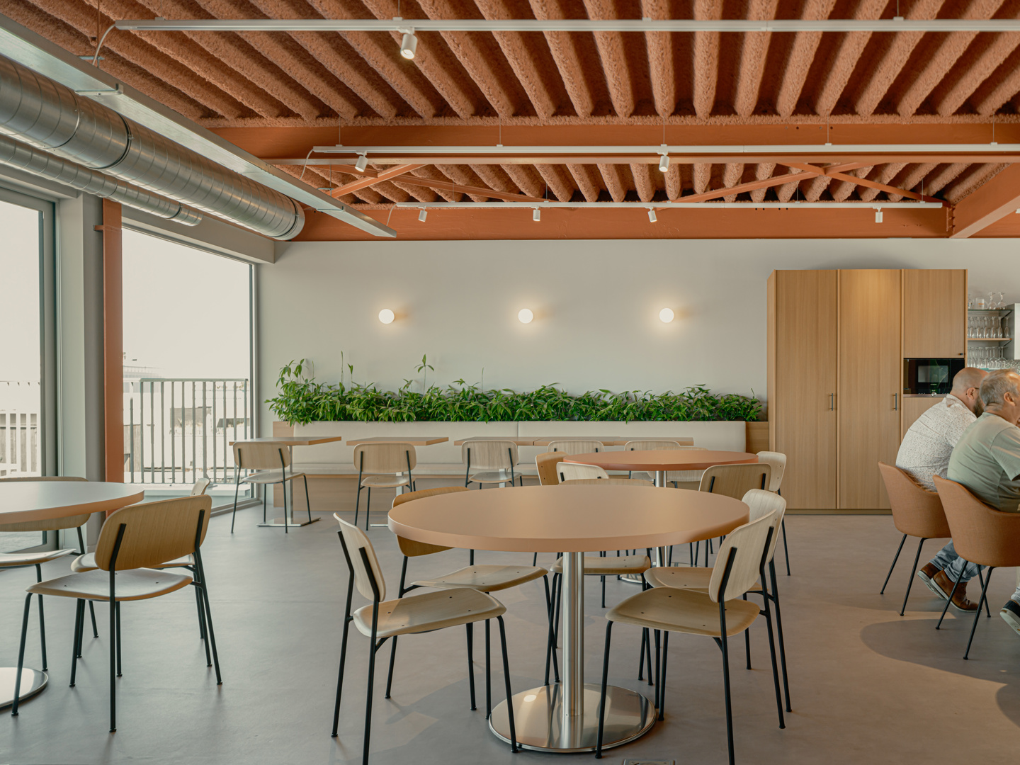 Het project draagt bij aan het welzijn van gebruikers door een werkomgeving te creëren die vertrekt vanuit comfort, gastvrijheid en menselijke schaal. Door het kantoor te benaderen als een boutique hotel ontstaat een warme, uitnodigende sfeer waarin medewerkers zich welkom en op hun gemak voelen. De variatie aan werkplekken – van stille zones tot informele lounges – ondersteunt verschillende noden en werkstijlen. Natuurlijke materialen, groen en daglicht versterken het gevoel van rust en kwaliteit. Daarnaast stimuleren de sociale ruimtes ontmoeting en verbinding, wat het mentaal welzijn en de betrokkenheid van medewerkers bevordert.