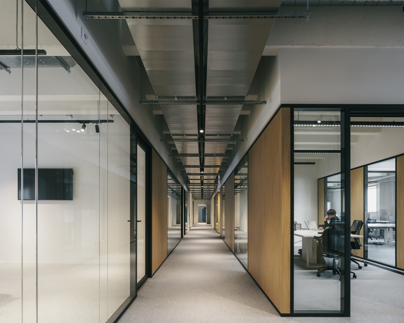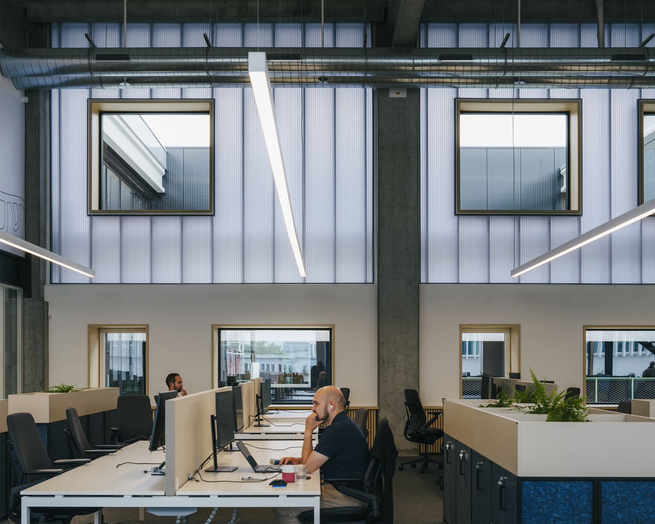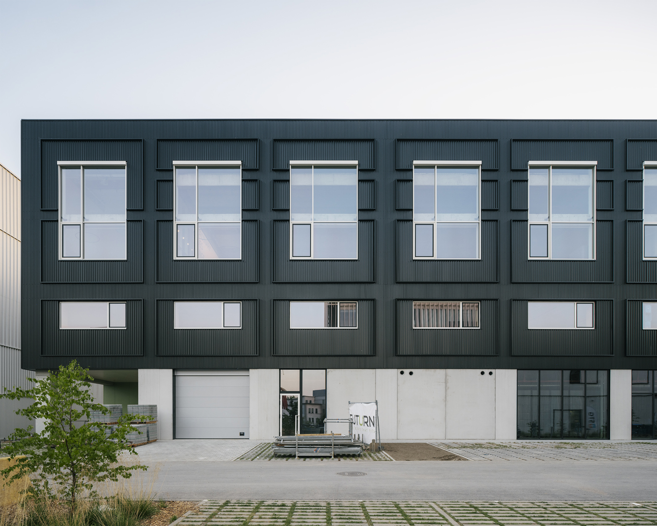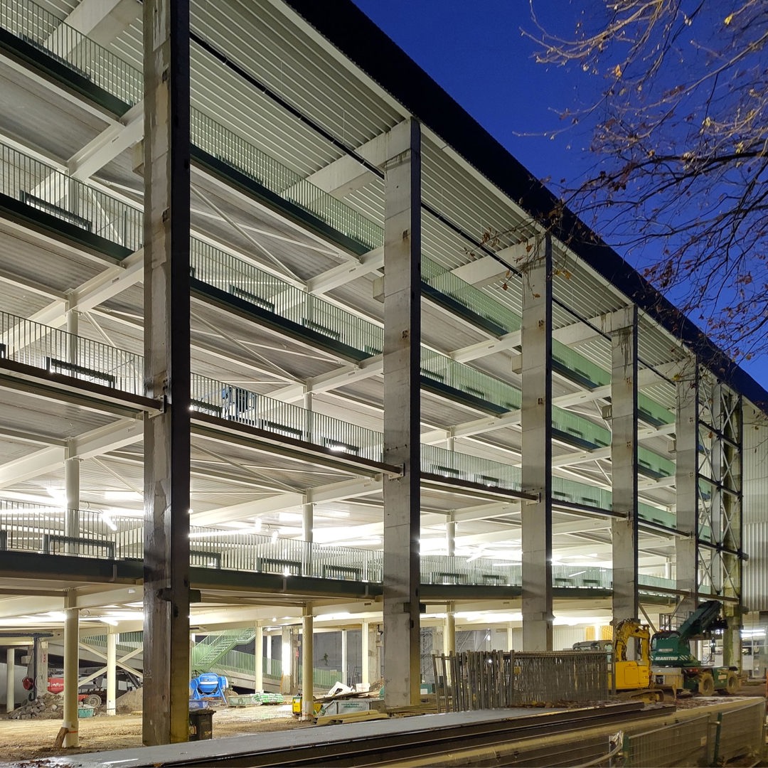 Westgate herdefinieert de klassieke bedrijvencampus als een open, stedelijk ecosysteem waarin productie, logistiek en werkplekken bewust worden verweven. De voormalige drukkerijsite Corelio werd getransformeerd via een robuust en flexibel masterplan, dat maximaal inzet op hergebruik van bestaande structuren. De ‘productieve ramblas’ vormt het ruimtelijk en sociaal hart van de reconversie: een genereuze binnenstraat waar circulatie, ontmoeting en bedrijvigheid samenkomen. Een bestaande drukpershal werd herbestemd tot een open, meerlagig parkeergebouw dat naast parkeercapaciteit ook logistiek ondersteunt en directe ontsluiting biedt tot de bedrijfsunits. Zo ontstaat een compacte, collectieve en toekomstgerichte werkomgeving binnen een traditioneel gesloten typologie van bedrijventerreinen.