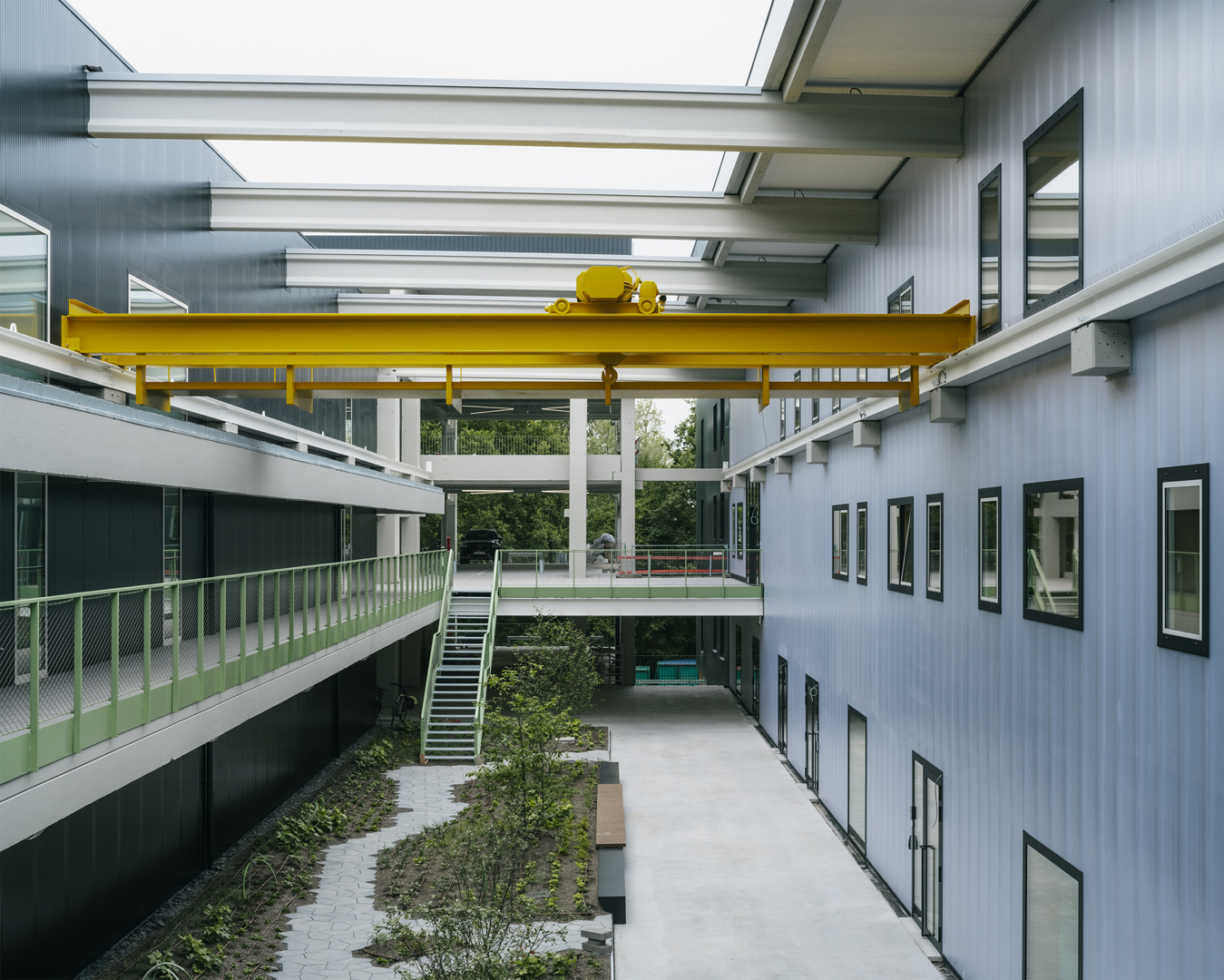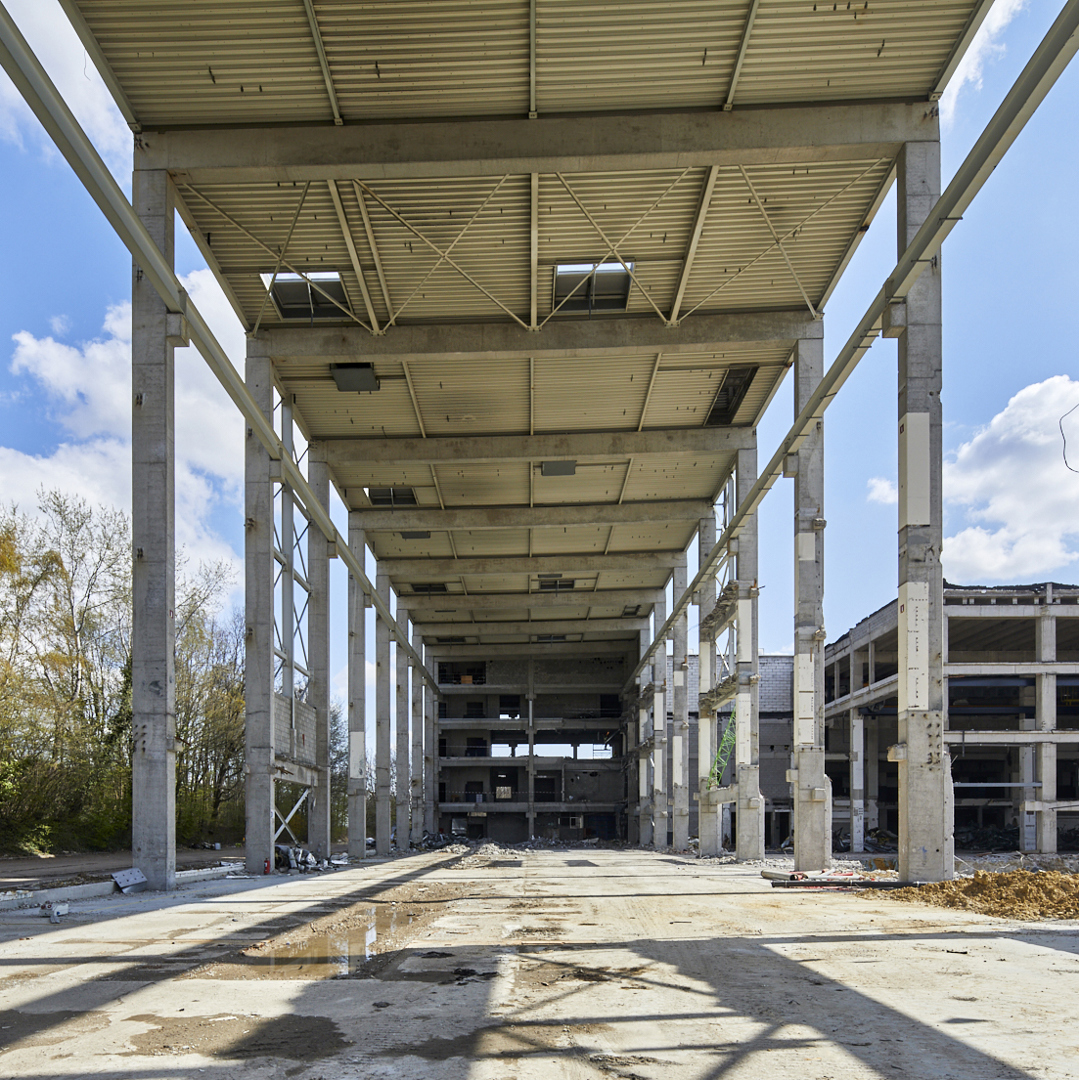 De bestaande industriële structuren vormden zowel een opportuniteit als een beperking: variërende overspanningen, draagvermogens en hoogtes vroegen telkens om precieze, projectmatige beslissingen en programmatische match-making. Tegelijk moest het ontwerp kunnen anticiperen op veranderende economische realiteiten. De gefaseerde ontwikkeling en het adaptieve masterplan maakten het mogelijk om onverwachte hindernissen te overwinnen, met behoud van kwaliteit, functionaliteit en levensvatbaarheid op lange termijn. De grootste innovatie ligt ongetwijfeld in het doorgedreven stapelen van bedrijvigheid op de volledige site – inclusief logistiek op hoogte – wat nieuwe typologieën introduceert binnen een strikt regelgevend kader van stedenbouw, integraal waterbeheer en brandveiligheid.