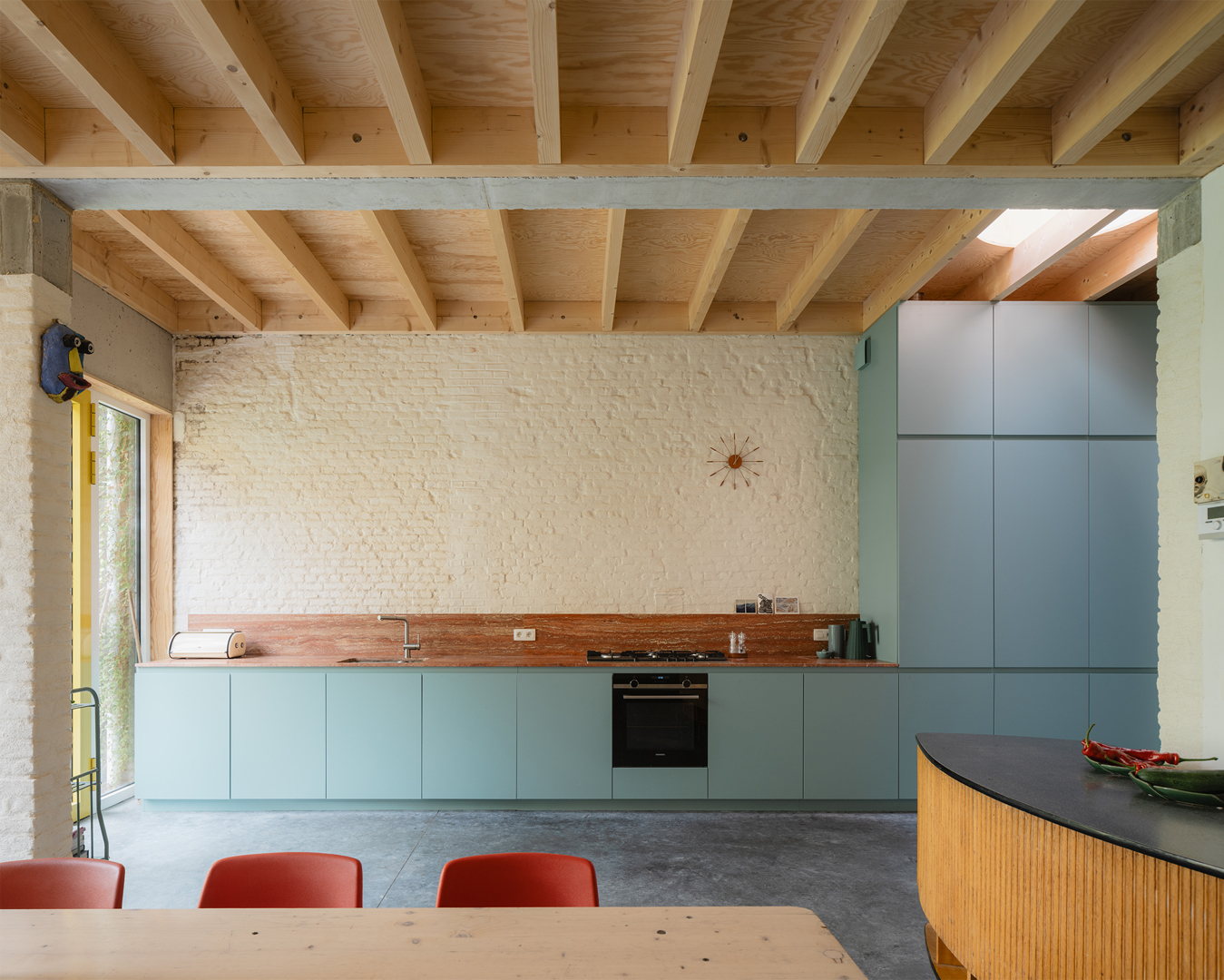 Dit project onderscheidt zich door een coherente integratie van oud en nieuw, waarbij het bestaande niet wordt overschreven maar geactiveerd. De tactiele materialisatie, de subtiele tectonische ingrepen en de scenografische opbouw van de ruimtes creëren een rijke en gelaagde woning. De combinatie van ruimtelijke kwaliteit, adaptiviteit en een uitgesproken architecturale taal resulteert in een hedendaagse transformatie die het bestaande in de verf zet en tegelijk nieuwe manieren van wonen mogelijk maakt.