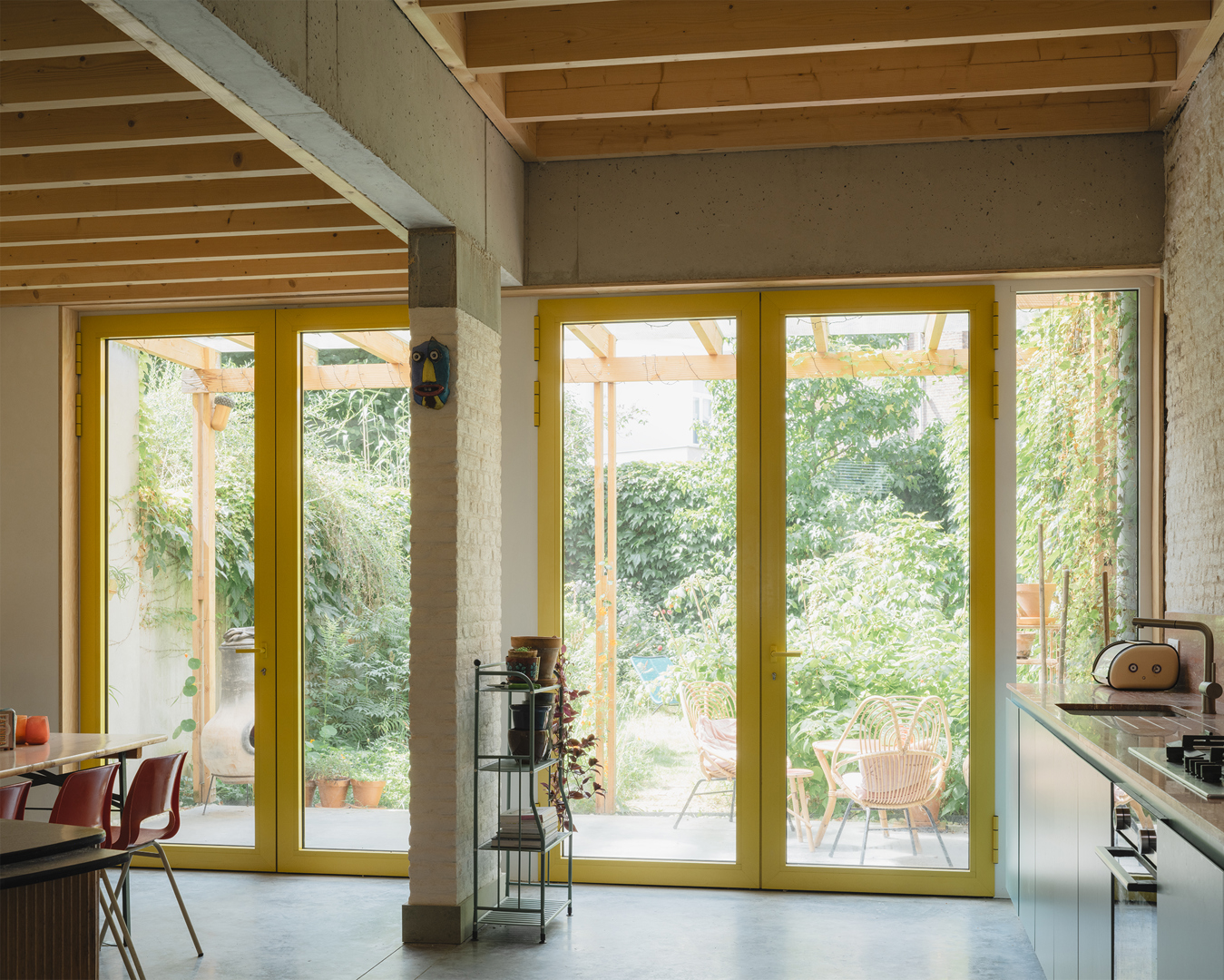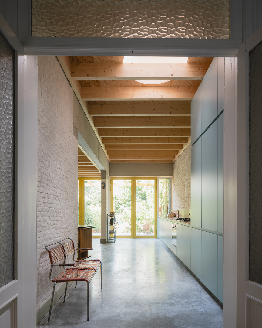 De opdracht omvatte de transformatie van een statig herenhuis in Antwerpen Zuid, waarbij we vertrekken vanuit het “as-found” als ontwerpstrategie. Door een grondige en aandachtige lezing van de bestaande bouwfysische en ruimtelijke condities werd ingezet op het activeren van veelal verborgen, intrinsieke kwaliteiten. Het ontwerp zoekt geen breuk, maar een continuïteit waarin oud en nieuw elkaar versterken en de relatie met de tuin opnieuw voelbaar en zichtbaar wordt.