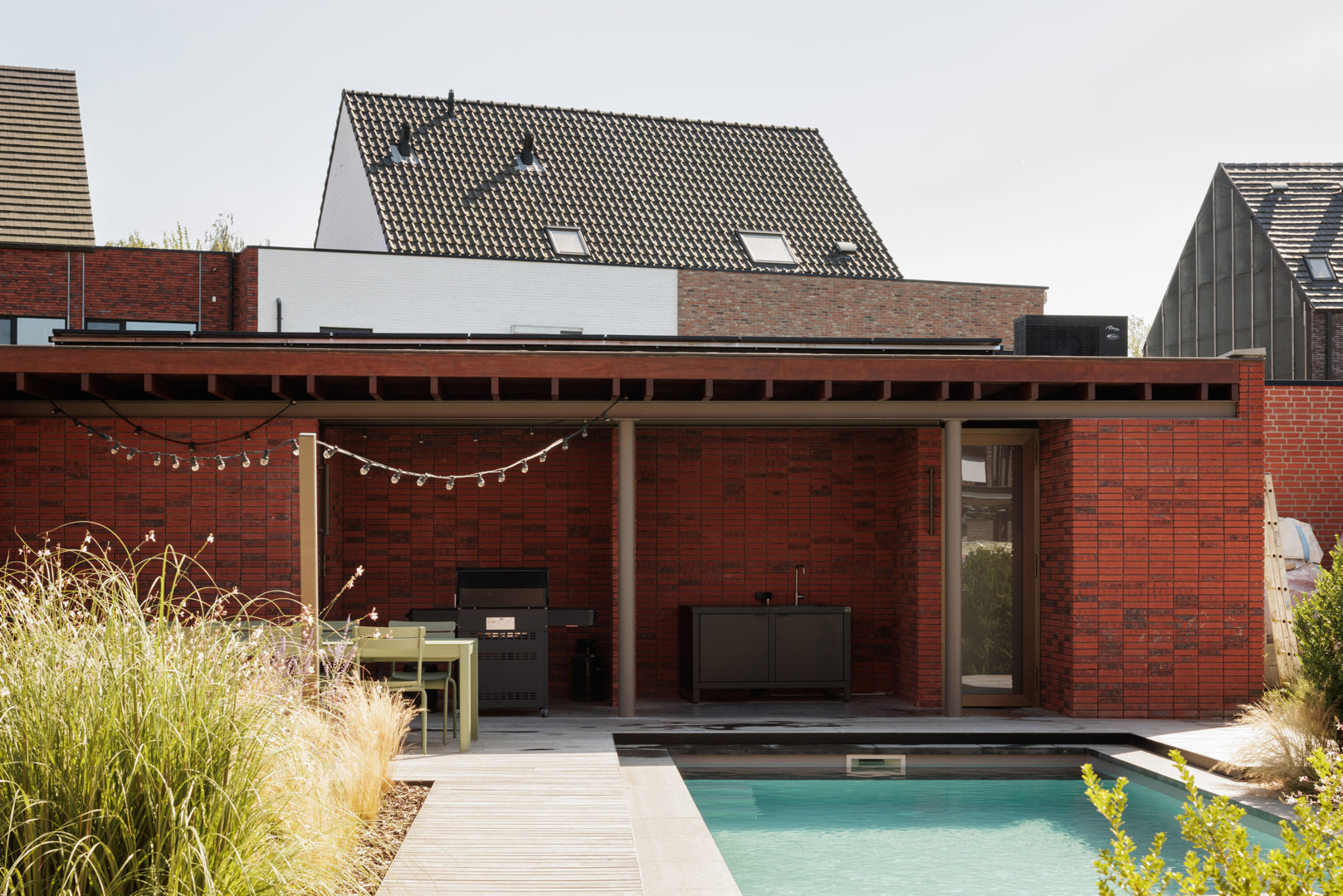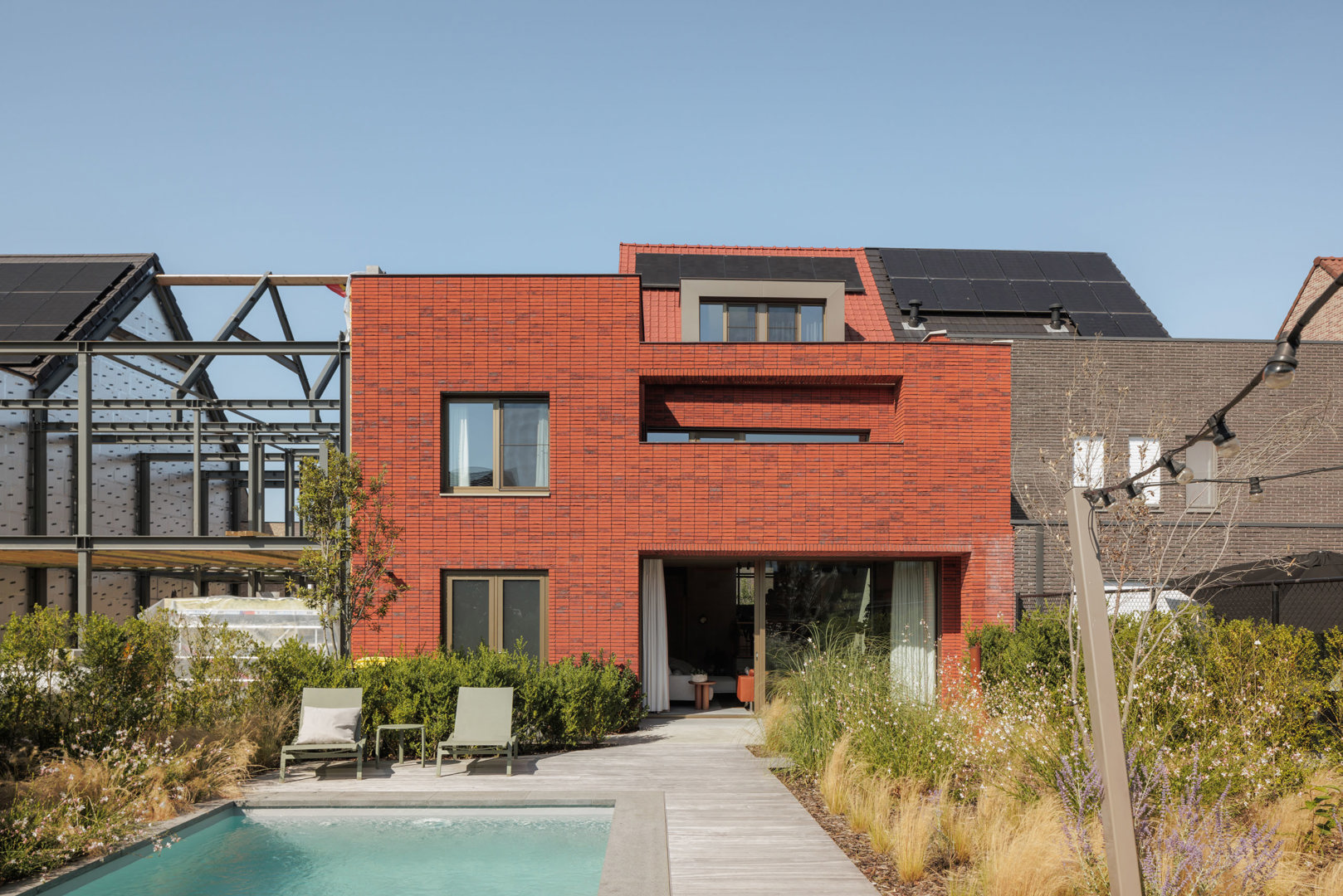 Rigide verkavelingsvoorschriften blijken niet noodzakelijk contra-productief om een architecturale ambitie van design for adaptability te beperken. Zowel klimaatadaptatie, verwezenlijkt door oriëntering en de te maken typologische settings van de raamkeuzes, als de natuurintegratie in het maagdelijk verkavelingslandschap kunnen bijdragen tot een duurzaam kwaliteitsvol wonen. De tuin wordt achteraan over de perceelbreedte afgebakend met een overdekt tuinpaviljoen die de interactie en belevingswaarde van de tuin maximaliseert. Verder werd bijzondere aandacht besteed aan de bouwwijze, zoals de specifieke keuzes van de metselwerkverbanden binnen en buiten, de typologische keuzes van het raamschrijnwerk en het reguleren van licht- en zonne-inval door de overwogen volumetrie van het gebouw.