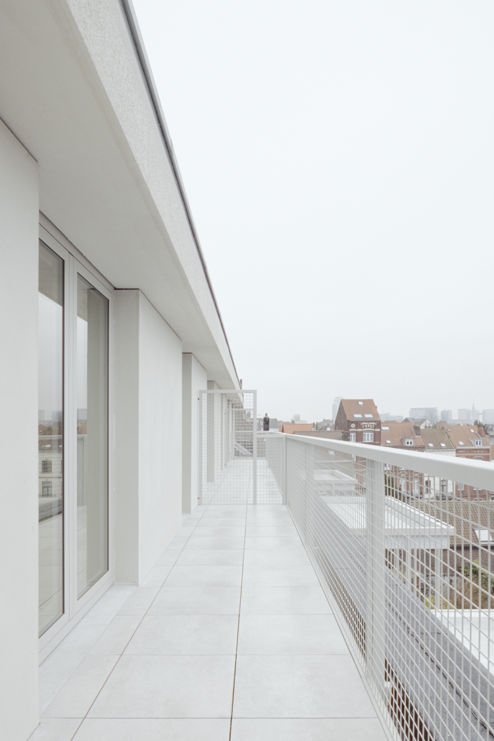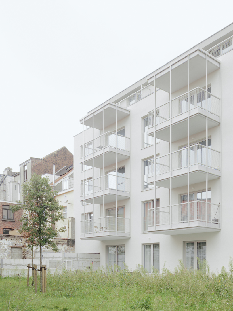 Collectief woonproject met 14 appartementen in Koekelberg, op een perceel dat voorheen werd ingenomen door een vervallen industriële loods. De opdracht bestond erin met betaalbare woningen een stedelijk bouwblok te herstellen binnen een dense en heterogene context, en tegelijk een hedendaagse stedelijke woonkwaliteit aan te bieden. Verschillende woningtypes worden georganiseerd rond een genereuze circulatie als achtergrond voor sociale interactie. Alle bewoners hebben toegang tot de tuin die dient als een gemeenschappelijke plek voor rust, spel en ontmoeting. Bijzondere aandacht ging naar de zicht- en licht relaties in het noord/zuid georiënteerde gebouw, daglicht in de circulatie en de relatie tussen private en gedeelde ruimtes, met het oog op woonkwaliteit en sociale interactie.