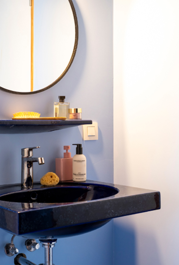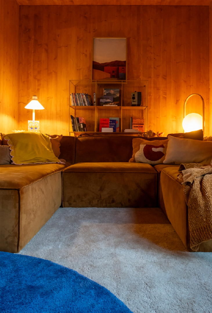 In tijden waar alles ‘duurzaam’ is, kunnen we met fierheid hier wél pronken met een holistisch duurzaam project. Bouwfysisch scoort de woning (E-peil 5) hoog: gebouwd in CLT-structuur (FSC- en PEFC-gecertifieerd), houtwolisolatie, uitvullingsisolatie in gerecycleerd polystyreen en gevelafwerking in niet-verlijmde houtvezelcement- en staalplaten. Ook bouwtechnisch is de aanpak consequent: warmwaterproductie met een LW-warmtepomp, verse lucht met een ventilatie-systeem-D, een PV-installatie op maat, regenwaterrecuperatie met overmaat. Circulariteit loopt als rode draad door het interieur: een gerecupereerde RVS-keuken, hergebruikte tapijten en vloeren uit scenografie en decorbouw, aangevuld met recup-sanitair en zichtbare technieken voor maximale flexibiliteit en hergebruik.