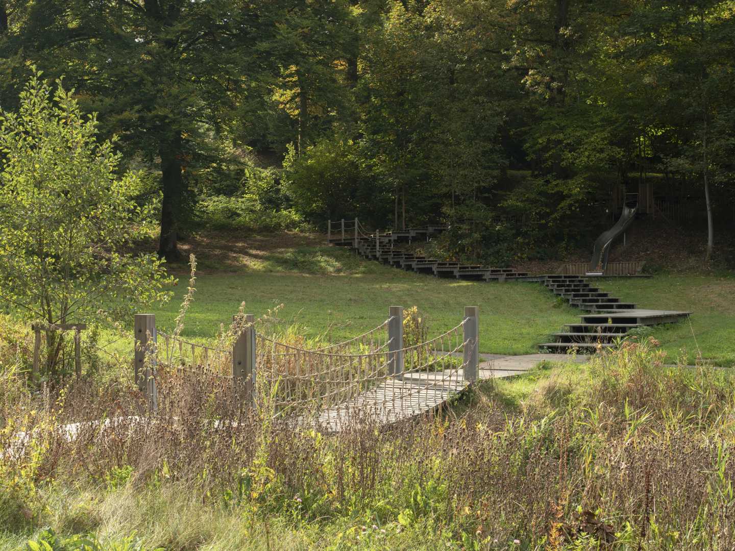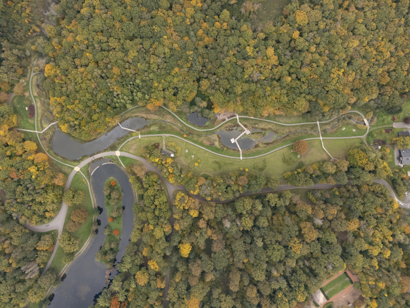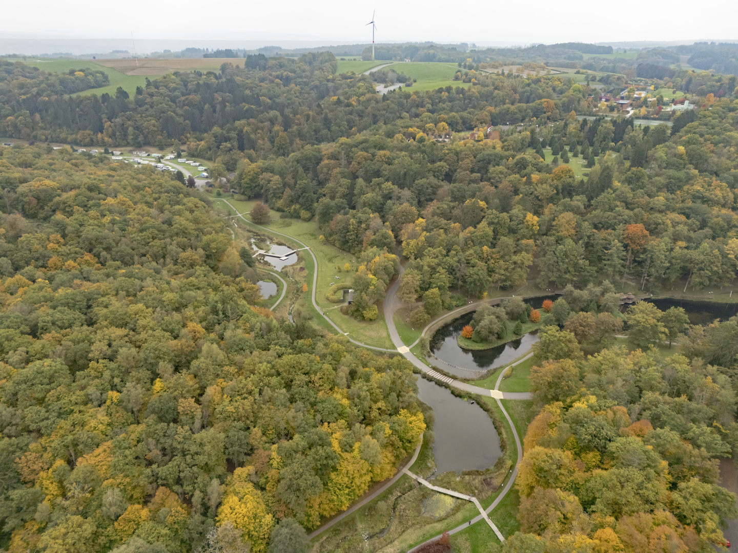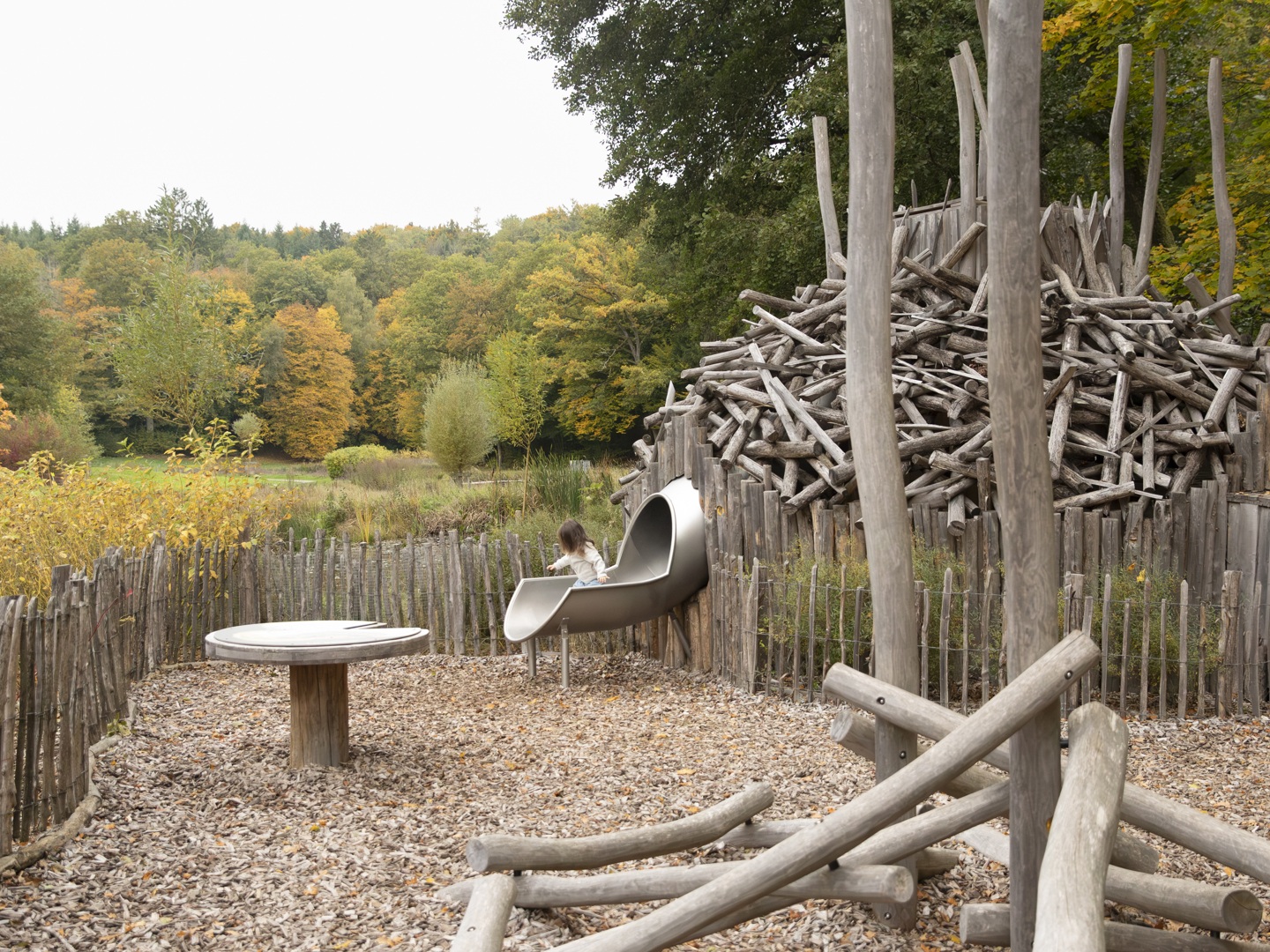 Het project bevindt zich in het hart van het provinciaal domein van Chevetogne dat zich uitstrekt over een gebied van bijna 600ha met landerijen en bossen. In het centrum verwelkomt een recreatiepark van 200 ha jaarlijks 450.000 bezoekers in zijn tuinen, musea, restaurants, accommodaties, speel- en ontspanningsruimtes. De ingreep betreft een landschapsgedeelte van 4 ha bij de samenvloeiing van de beken Molinia en Mivau, die twee kleine valleien met beboste hellingen uithollen en de vijvers van het park voeden. In de jaren '70 werd een deel van de rivier gekanaliseerd, de weilanden werden drooggelegd en wegen werden gepland om een caravanpark op te zetten. 50 jaar later wordt een deel van het park verplaatst om een semi-natuurlijk landschap van wetlands te herstellen, waarmee wandelaars verwelkomd kunnen worden.