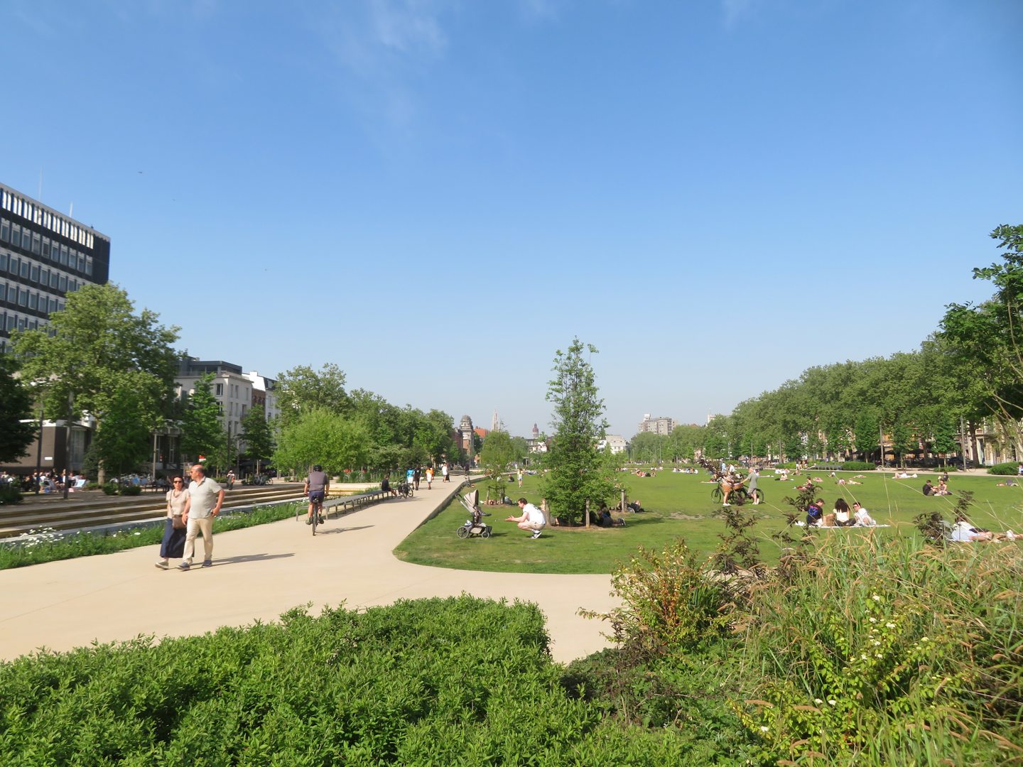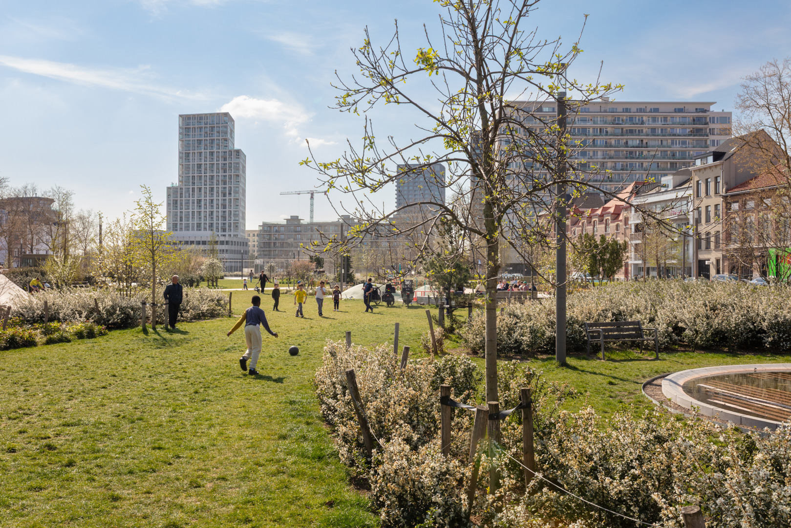 Waar ooit een uitgestrekte parkeerplaats lag, ligt nu het Zuidpark: een levendige oase in het hart van Antwerpen. De Gedempte Zuiderdokken, oorspronkelijk aangelegd als drie havendokken, verloren hun functie toen de kaaien in de jaren ’60 werden gedempt en ingericht als parking en evenemententerrein. In 2015 besliste de Stad Antwerpen om het parkeren ondergronds te brengen en deze uitzonderlijke open ruimte een nieuwe toekomst te geven. De ontwerpopdracht bestond erin deze plek opnieuw betekenisvol te maken: een publieke ruimte die haar historisch karakter respecteert, de verbinding herstelt tussen binnenstad, Nieuw Zuid en de Schelde, op meerdere schaalniveaus werkt, ruimte biedt aan een rijk palet van activiteiten en tegelijk uitgroeit tot een groene, klimaatrobuuste tuin voor de stad.