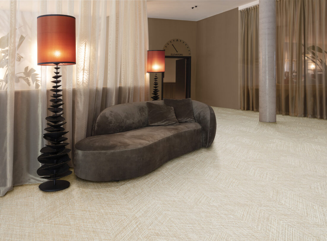 Net als bij voorgaande collecties, liet 2TEC2 zich voor Strata’s design inspireren door de natuur. Het levendige lijnmotief is gebaseerd op de eeuwenoude fossiele gelaagdheid in rotsen en gesteenten. Donkere en lichte tinten wisselen elkaar af en strekken zich uit over de vloer.