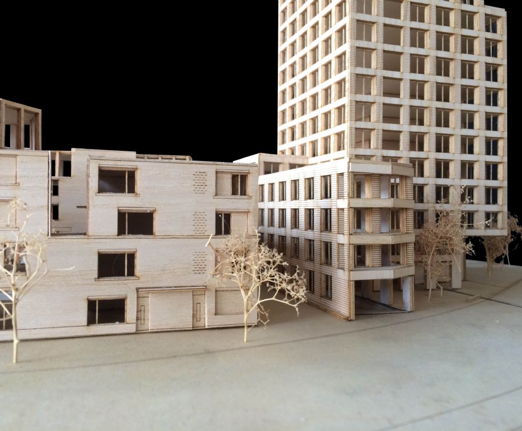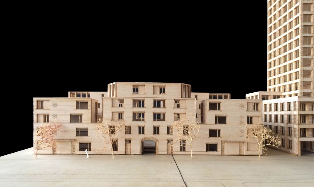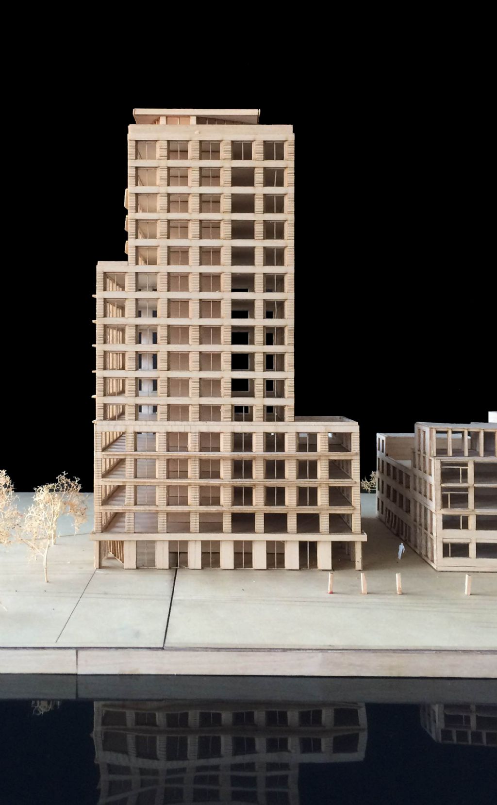 "De typologie en schaal van het stedelijke stapelhuis (zoals ontworpen door Louis Roelandt in 1844) is het uitgangspunt van ons ontwerp", klinkt het. Het blijkt een fantastische stedenbouwkundige bouwsteen die kan bemiddelen tussen de kleine schaal van de grondgebonden woning, de tussenschaal van het gestapeld wonen en de grote schaal van de toren. Eén gestalte, die weliswaar een verschillende verschijningsvorm aanneemt naar stad, kade of steeg. Een robuuste stedenbouwkundige module die in een eenvoudige nevenschikking langs de kade geplaatst wordt.