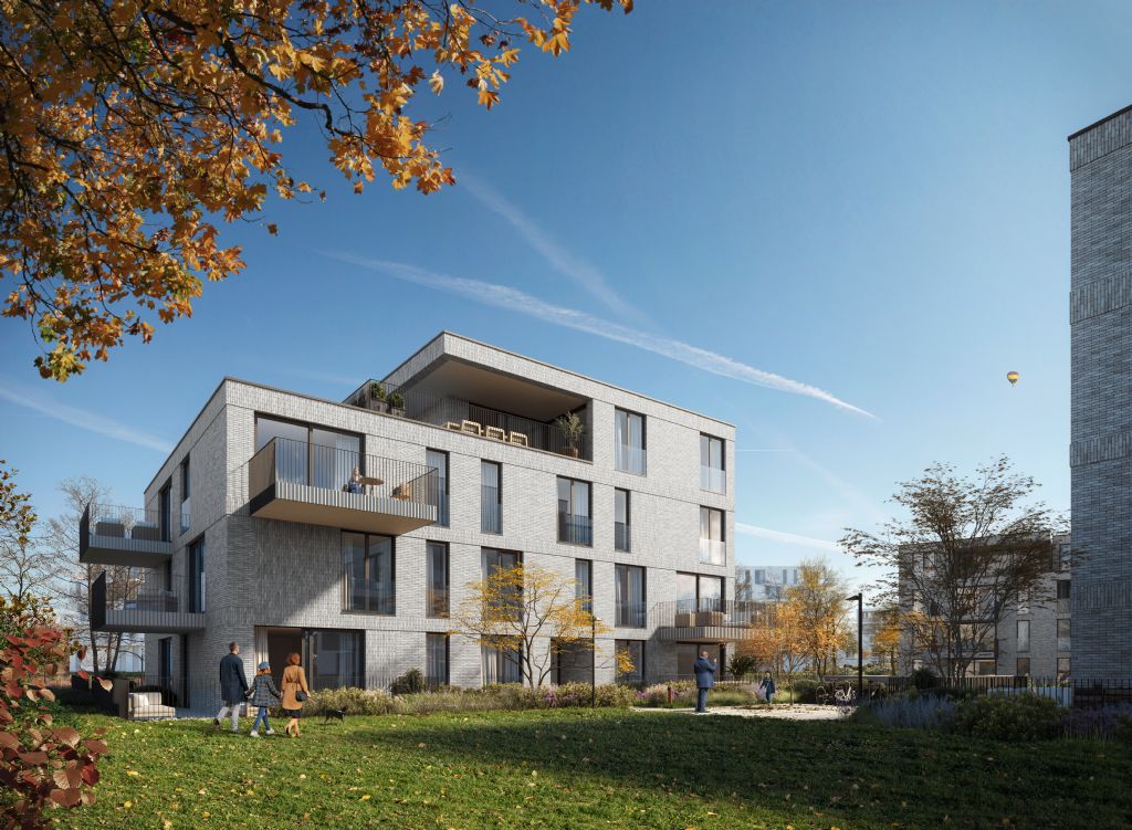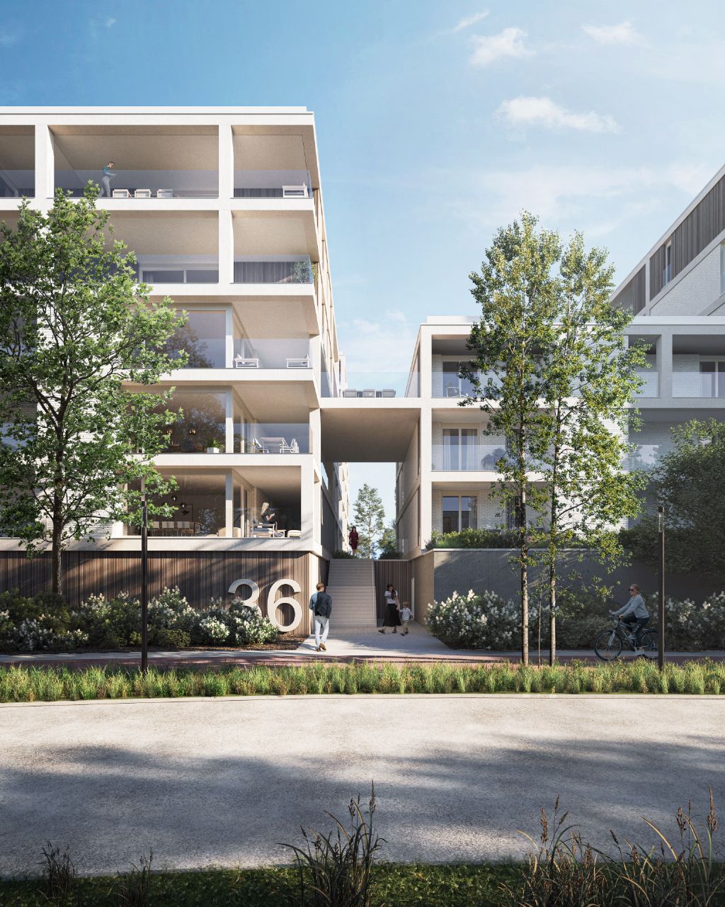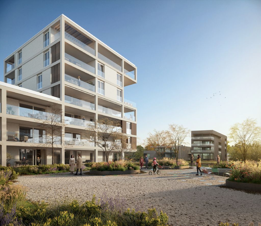 Architectenteam MaMu creëerde drie types woonbelevingen, weet architect Jeroen Maesen: “Ten eerste is er Parkview. Deze vier bouwblokken - met telkens 4 lagen - liggen wat lager op het projectdomein, in een groene oase. Het zijn betaalbare appartementen in een less is more-stijl. Hun beige-grijze gevels vloeien mooi over in de privatieve groene omgeving, waar kinderen veilig kunnen spelen.”