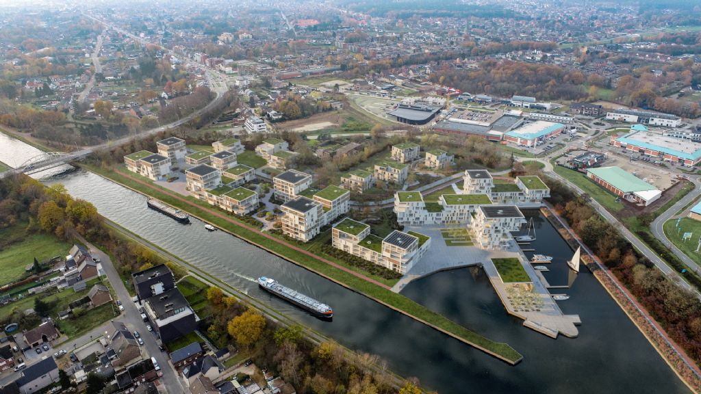 393 appartementen en jachthaven geven nieuwe toekomst aan vroegere scheepswerf in Maasmechelen (MaMu Architects)