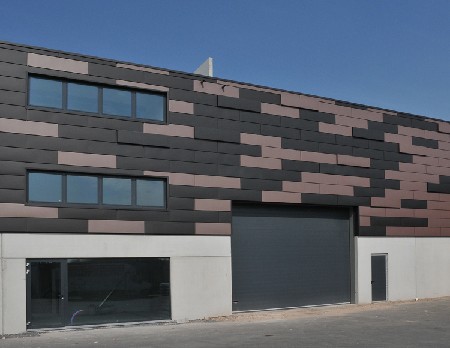 VMZINC stelde op Batibouw 2012 de nieuwe VMZ Mozaik Relief voor en introduceerde daarmee een derde dimensie in gevelbekleding. Het cassettesysteem laat toe om met verschillende vormen, tinten en dieptes een uniek 3D-uitzicht te geven aan een gebouw. Brugs Dak Centrum, verdeler van o.a. VMZINC-producten, nam de proef op de som en koos als één van de eersten voor dit nieuwe gevelsysteem. De nieuwe showroom werd gedeeltelijk bekleed met deze zinken cassettes. Brugs Dak Centrum koos voor een combinatie van Pigmento Rood en Anthra-Zinc in 3 dieptes: 40, 60 en 100 mm.
