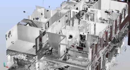 In een tijdsbestek van circa 7 uur heeft 3Esolutions de hele site opgemeten in 3D en de gegevens verwerkt in een puntenwolk. Het architectenbureau wilde vervolgens de situatie zelf volledig uittekenen. 3Esolutions heeft daarom verschillende onderleggers bezorgd waarmee het bureau aan de slag kon. De aangeleverde dwg’s en jpg omvatten een grondplan en verschillende aanzichten en snedes. Het bureau genoot daardoor naar eigen zeggen van een tijd- en kostenbesparing van 30%.