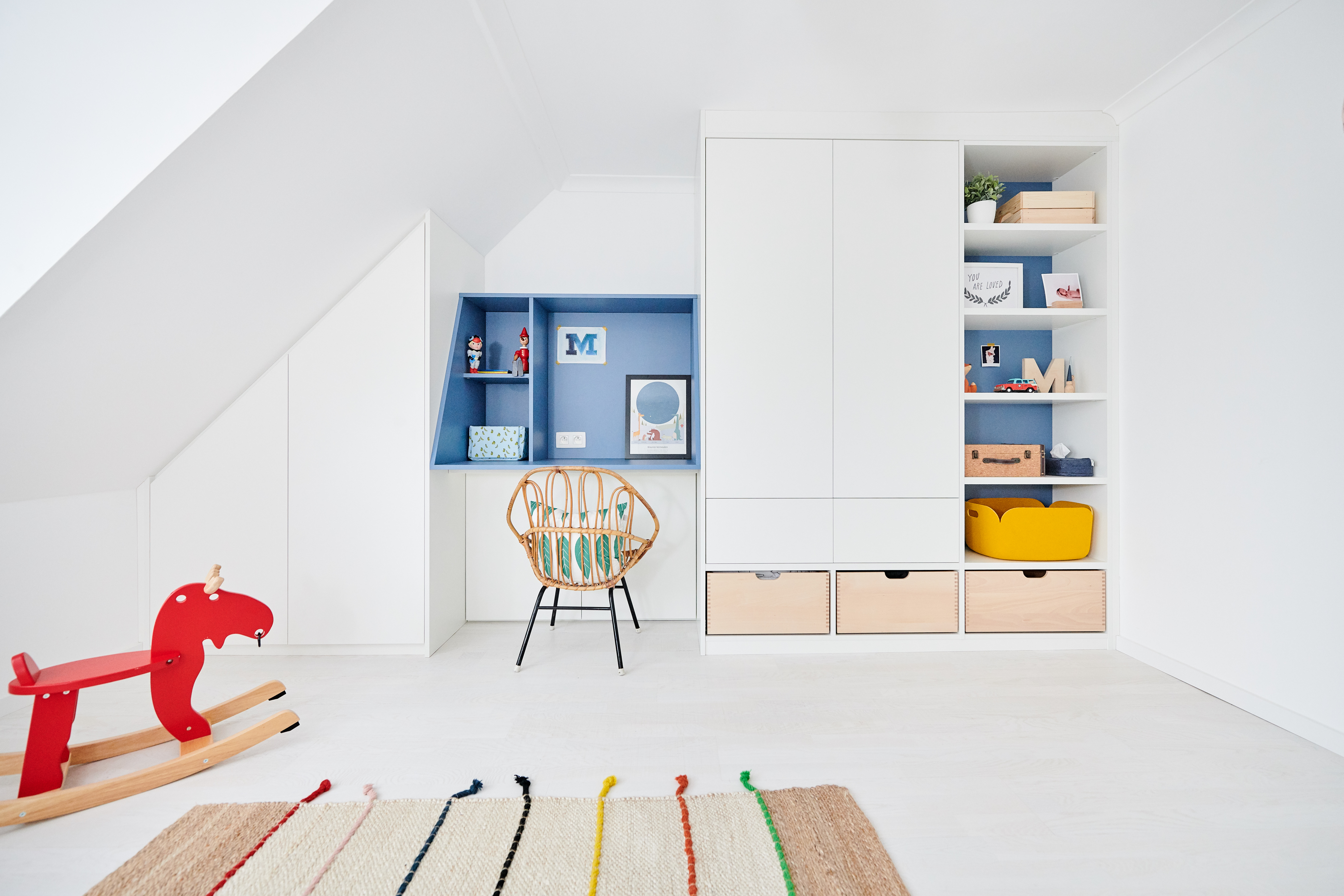 Volstaat de hoofdtelefoon niet (meer)? Dan kan je best een eigen werkplekje op de slaapkamer van je kind installeren. Onder een schuin dak, als onderdeel van een grotere wand, onder een hoogslaper, … een speel- en studiebureautje vindt gauw z’n draai. Met de uitgebreide kleurenwaaier van Camber maak je van het bureau een knap verlengde van de kleurrijke kinderkamer.
