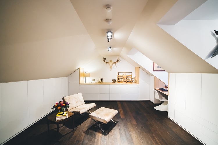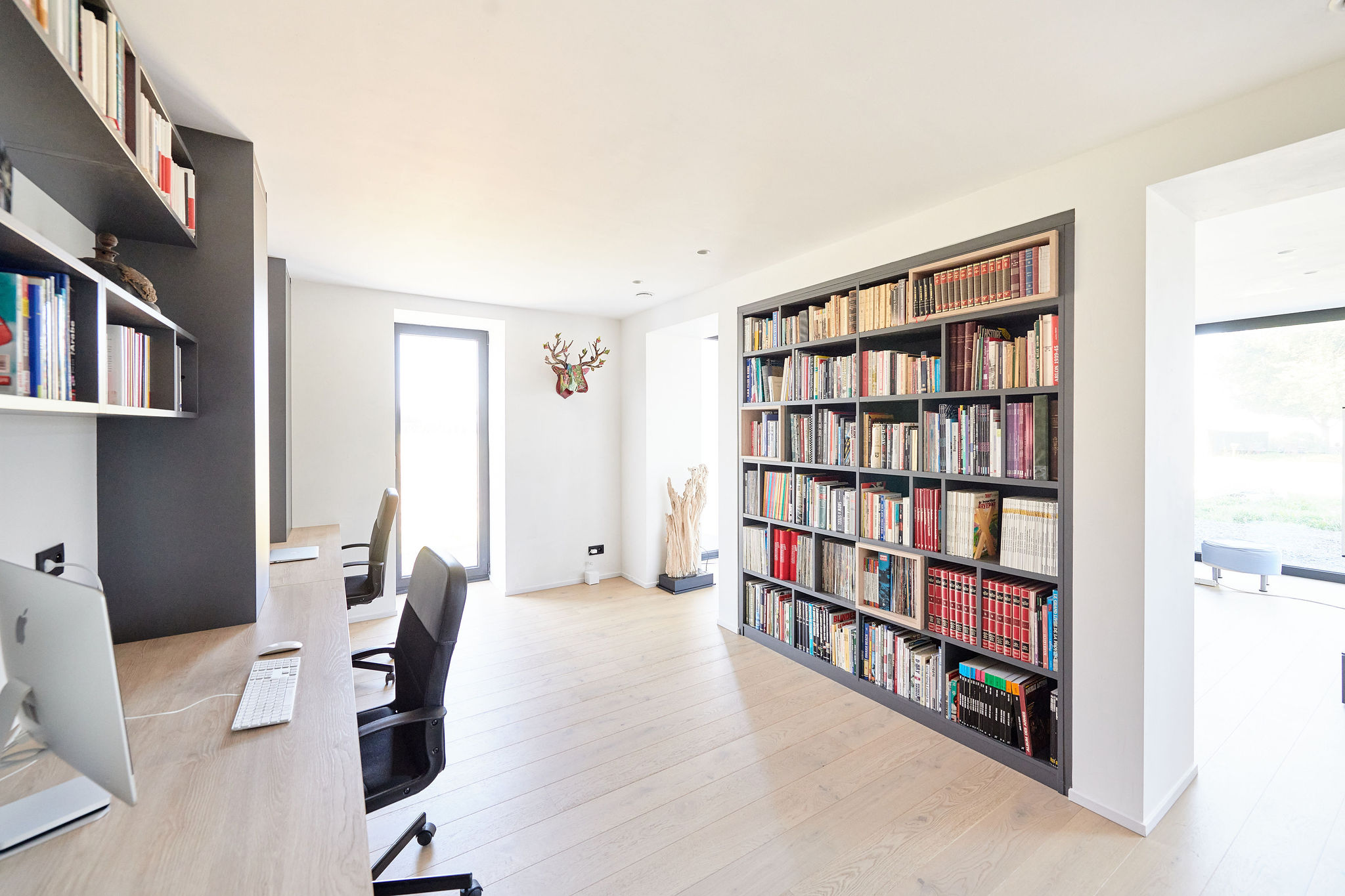 Werk je graag in complete stilte en zonder de muizenissen van het dagelijks leven om je heen? Misschien vind jij dan wel je ‘work from zen’ op zolder. Met het hoofd net niet in de wolken geniet je van veel licht, rust en een stimulerende, knusse werkomgeving. Wandkasten op maat en ingewerkte opbergmeubelen halen het maximum uit de nok van het dak.