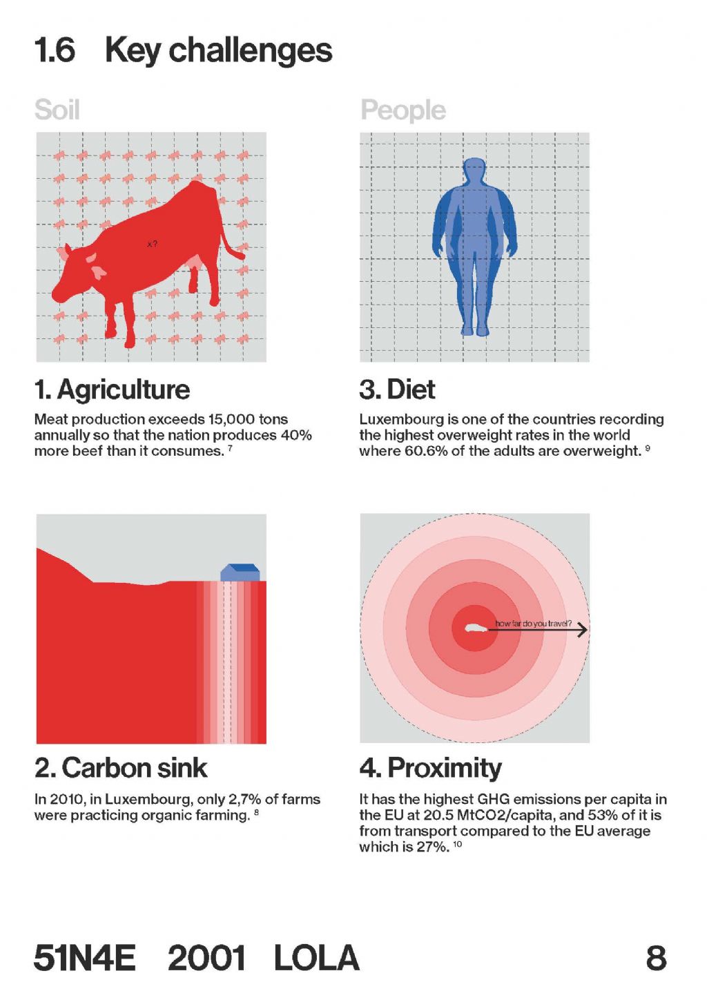 Het bureau voelt zich ook comfortabel als het samenwerkt met andere teams zoals in het project Luxemburg in transitie. In dat project sprak het collectief ook met vijftien landbouwers, boswachters en onderzoekers met verschillende achtergronden om hun mening te vragen over obstakels en wat de transitie naar een samenleving met minder CO2-uitstoot zou kunnen stimuleren. Die obstakels en mogelijke drijfveren heeft het in kaart gebracht en nadien heeft het een ruimtelijke planningsvisie ontwikkeld voor het grondgebied van Luxemburg.