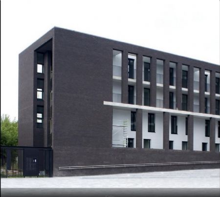 Inderdaad, het oorspronkelijke ontwerp wint een wedstrijd in 2006, negen jaar geleden dus, en vanaf het prille begin wordt gediscussieerd over de te zwarte gevelsteen, die een inbreuk zou zijn op de lokale stedenbouwkundige verordening. Onnozele discussie of niet, zoals altijd wordt een consensus bereikt tussen alle partijen, hier rond een compromis met een iets lichtere steen. Het oud zeer wordt gesedeerd, de bouwvergunning verkregen, de bouw aangevat.