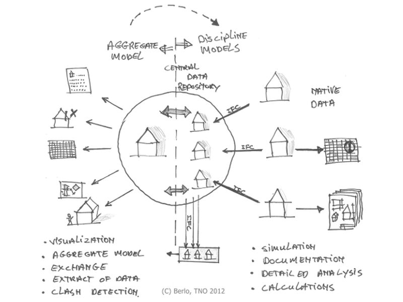 De openBIM-methode is gebaseerd op de uitwisseling van open bestandsformaten waaronder IFC-bestanden. Ze houdt de uitwisseling in van intelligente gebouwinformatie op een transparante en consistente manier tussen verschillende softwarepaketten. OpenBIM wil zo een universele, geïntegreerde ontwerp- en communicatiemethode zijn die ervoor zorgt dat de verschillende partners alle belangrijke informatie over een project van ontwerp tot uitvoering beheren en verder ontwikkelen in een 3D-model. Elke partij werkt voor zijn discipline het model uit en kan het model van andere specialismes gebruiken als basis voor referentiegebruik. Op die manier is het onderscheid tussen de verschillende bevoegdheden makkelijk te maken.