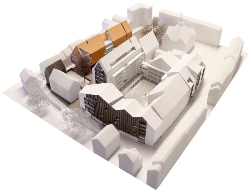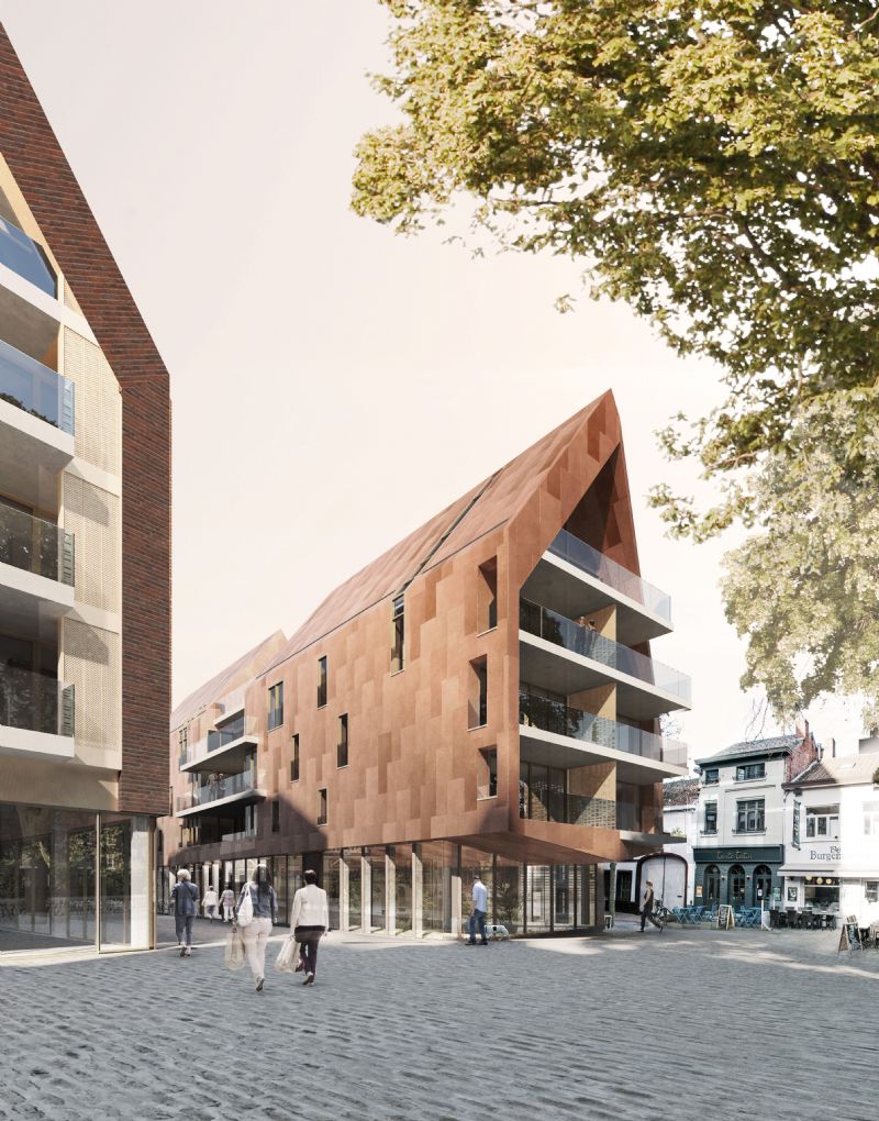 Vooraleer a2o architecten startte met het ontwerp, voerde het bureau heel wat historisch onderzoek uit om te kijken hoe het bouwblok door de eeuwen heen werd getransformeerd. Dat onderzoek werd doorgezet tot in de ontwerpfase. Het geheel resulteert onder meer in de toepassing van baksteenarchitectuur, een typologie van hellende daken met keramisch materiaal, een mooie binnentuin en in het feit dat er veel aandacht werd besteed aan de buitenruimte tussen de gebouwen. De appartementen verschillen van afmetingen, maar hebben wel enkele dingen gemeen. Ze baden in het licht, hebben een groot terras en zoeken de relatie met de straat op. Dankzij het veelvuldige gebruik van glas en de publieksfuncties op het gelijkvloers straalt de architectuur dat ook uit. A2o Architecten ontwierp eerder al gelijkaardige projecten. Het Clarenhof in Hasselt, de Sionsite in Lier en een woonproject aan de Vaartkom in Leuven zijn hier enkele voorbeelden van.