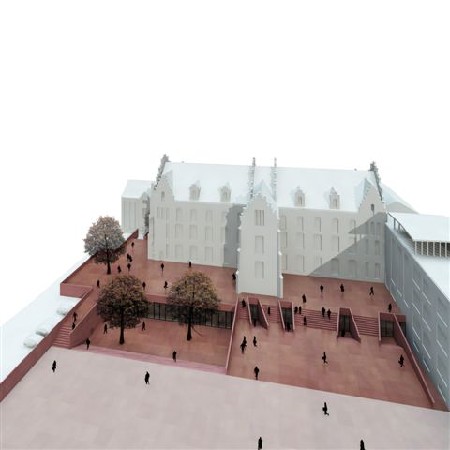 Door een grondige analyse van het functioneren van het gebouw is gebleken dat, omwille van circulatie en bestemmingen, de hoofdtoegang best kon ondergebracht worden in een nieuw volume waarin ook alle overige administratieve functies zullen ondergebracht worden. Dit nieuwe volume, met geperforeerde metalen gevel, zal overigens een nieuw accent zijn op de groene Boulevard van Hasselt in aansluiting met het bestaande Neogotische gebouw. De werken hiervan zullen aanvangen vanaf het voorjaar 2010.