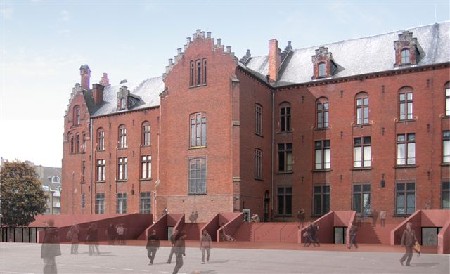 Het concept van de ‘sokkel’ zal ten dienste staan van de monumentaliteit van het geklasseerde monument en zal dit nog versterken. In een latere fase zal ook de sokkel worden doorgetrokken waaronder een polyvalente ruimte wordt ondergebracht. Momenteel zijn deze werken in uitvoering en zal de school het sanitair vanaf maart 2010 in gebruik kunnen nemen.