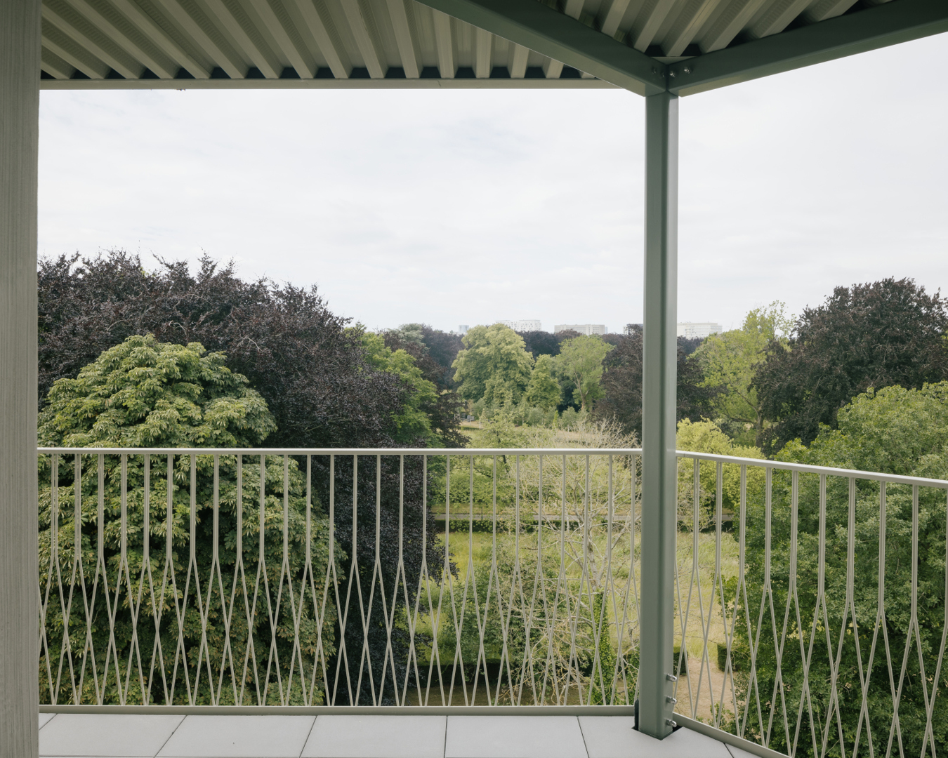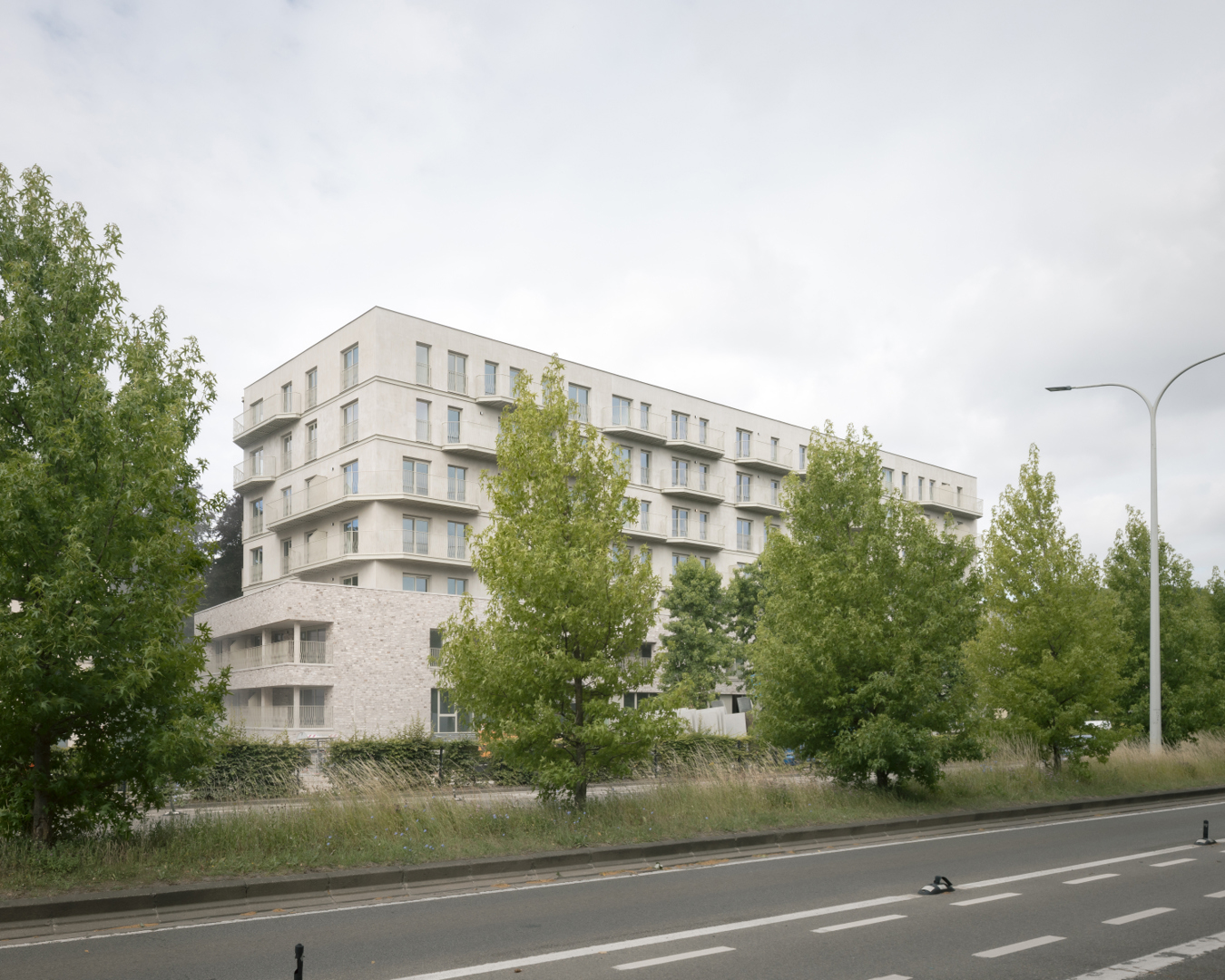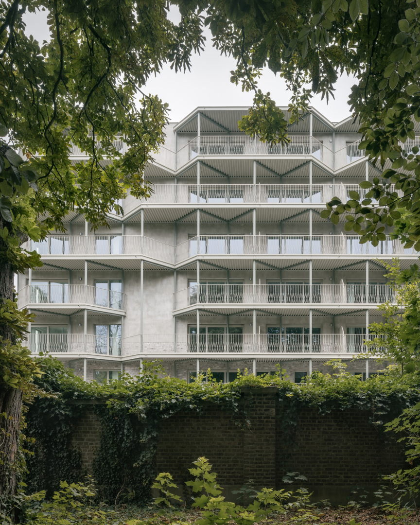 Opvallend is de toevoeging van een zelfstandige balkonstructuur, opgebouwd uit stalen portieken en betonnen platen. Deze structuur ondersteunt niet alleen de terrassen, maar bepaalt ook de architecturale expressie van het gebouw. De ritmiek en detaillering verwijzen subtiel naar art nouveau, zonder in nostalgie te vervallen, en geven het project een herkenbare identiteit.