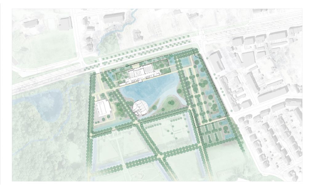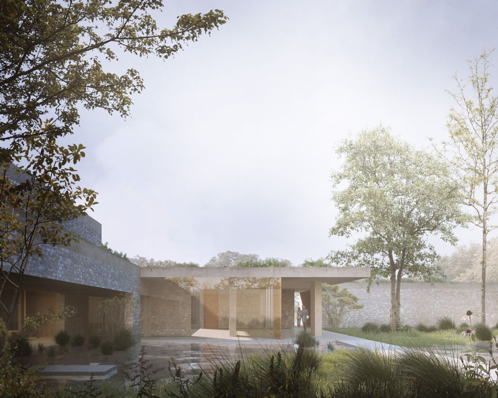 Hierbij laten de ontwerpers zich inspireren door de omsloten tuin (hortus conclusus): een serene typologie die niet de architectuur maar het landschap centraal zet.  Een architectuur die geen ruimte inneemt, maar ruimte geeft. Het nieuwe volume plaatst zich daarom aan de rand van het park met zijn gezicht naar het park. Er ontstaat een nieuwe landschappelijke ruimte waarin voetgangers en auto's worden gescheiden en waarin stilte en sereniteit, die kenmerkend zijn voor de plek, weer centraal komen te staan.
