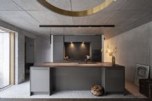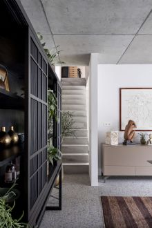 De woning werd opgevat als een L-vormig plan waarbij op de gelijkvloerse verdieping de inkomhal, keuken en woonkamer lineair aan mekaar worden geschakeld langs een statige eikenhouten vliesgevel om een maximaal zicht op de omgeving te vrijwaren. De schakeling vindt haar einde in de woonkamer die voor de knusheid half ligt ingebed in de heuvelflank.
